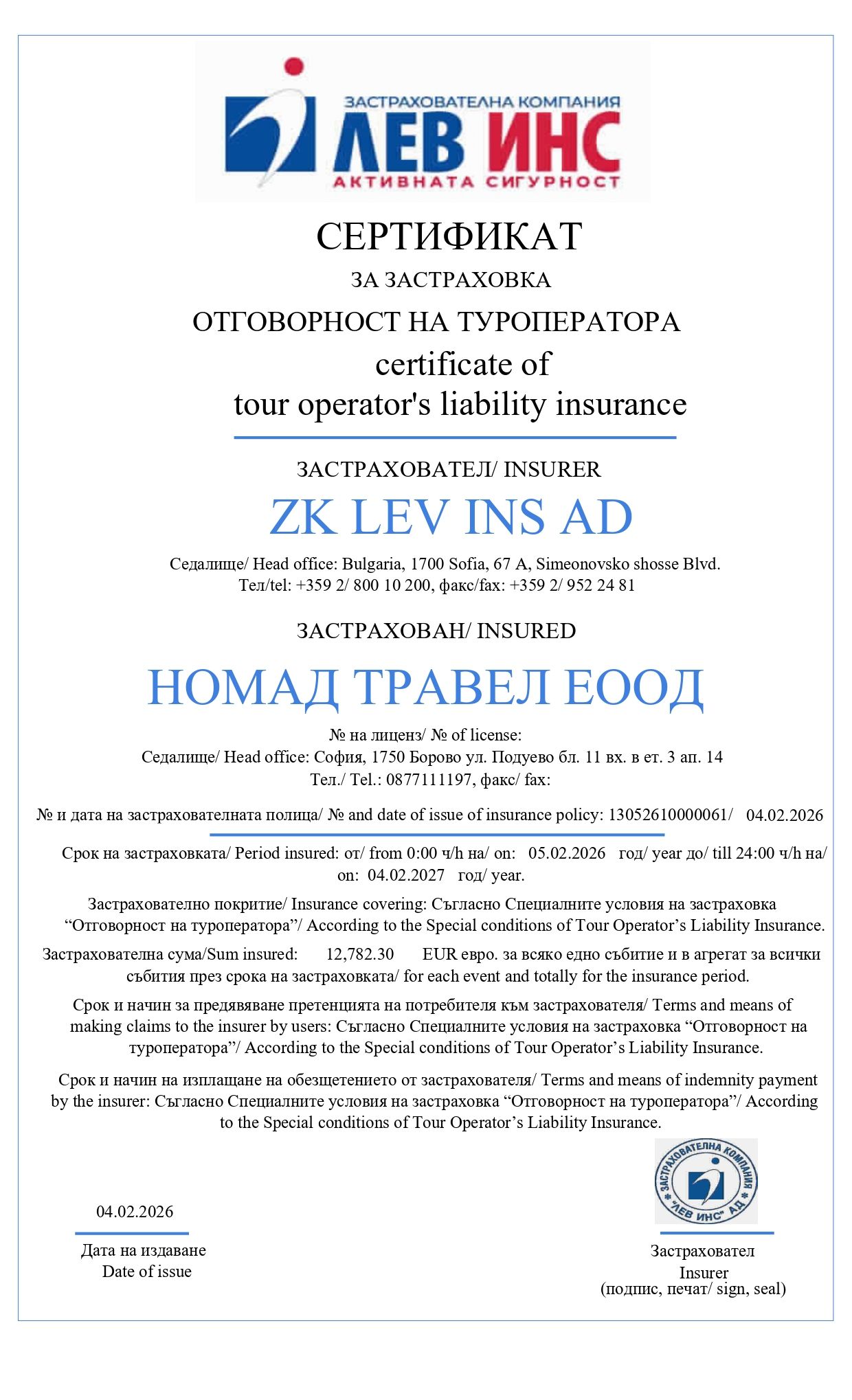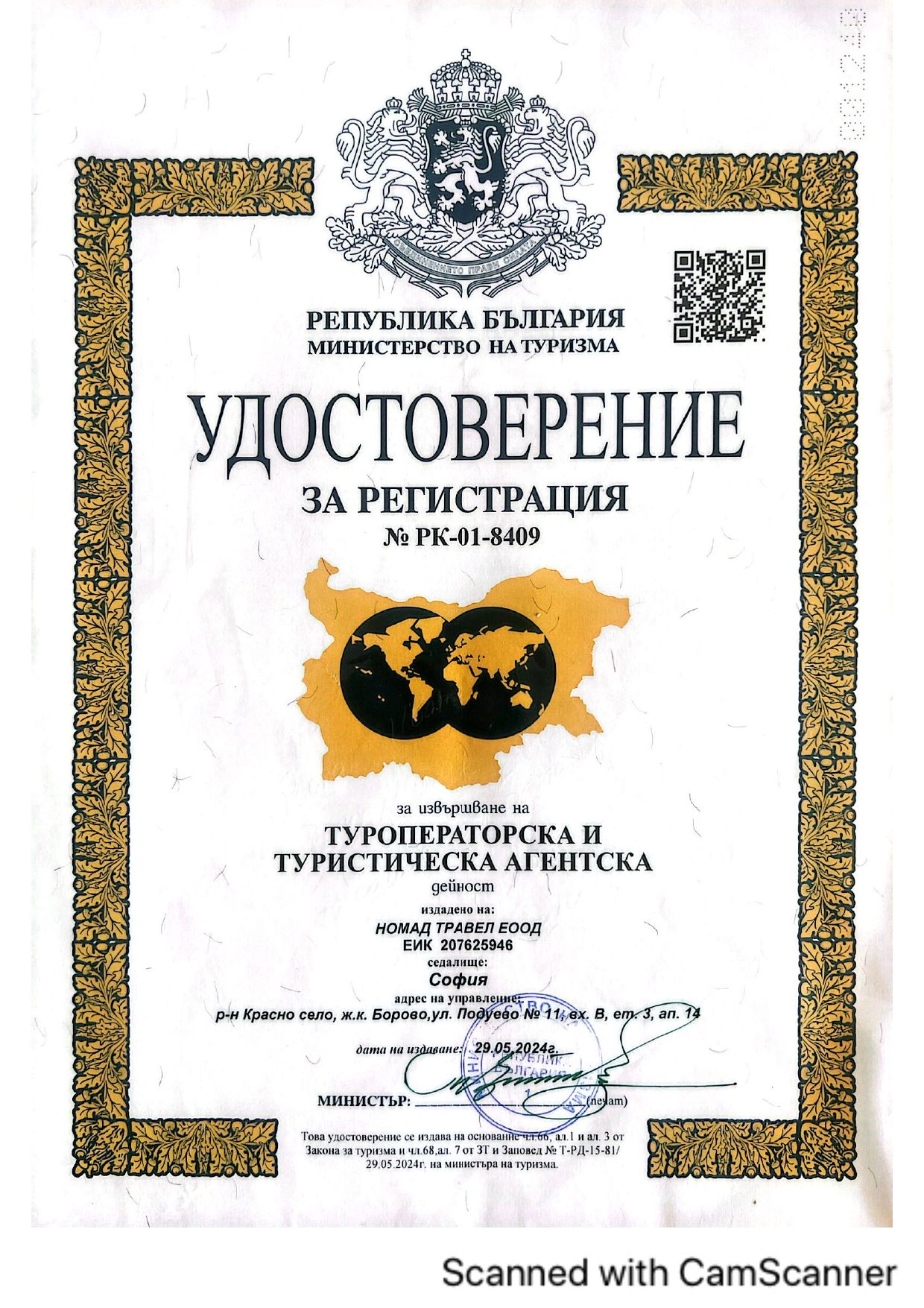 Дружеството е вписано в регистъра на ТО на Министерството на Туризма под номер РК-01-8409 като ТО и ТА и работи изцяло онлайн.