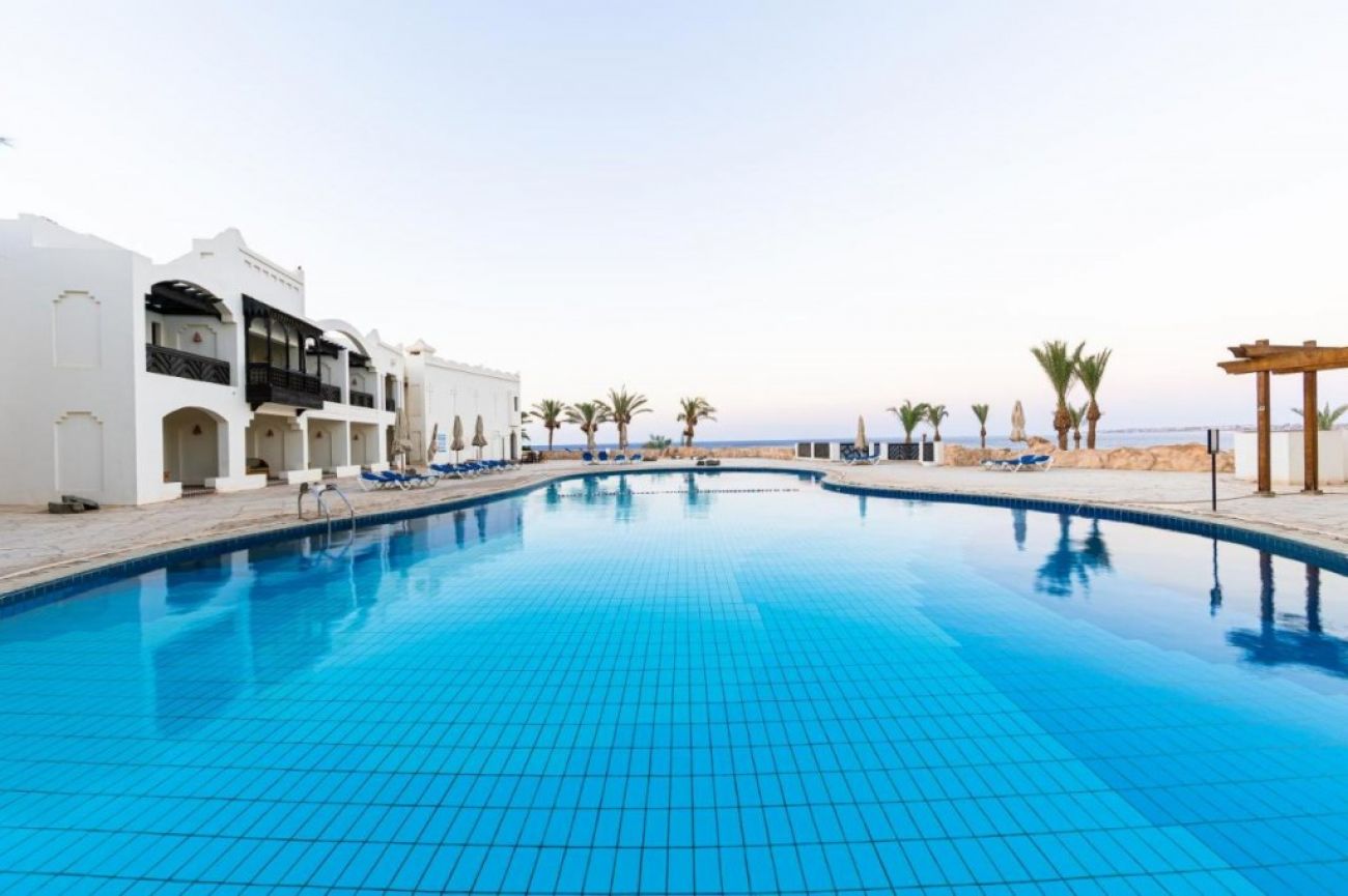 Разположение: Хотелът е построен в традиционен мавритански стил в красива градина, разположен на брега на морето, директно на частния плаж с коралов риф Far Garden Reef, на б км от център на Наама Бей, на 9 км от летището.