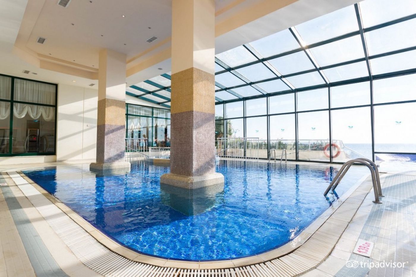 На територията на хотела: Хотелът предлага на своите гости 200 кв.м открит басейн и 80 кв.м закрит басейн, както и основен ресторант за 450 места. Има и а ла карт ресторант с интернационална кухня, снек бар и лоби бар. Безплатен Wi-Fi във фоайето. Дежурен лекар и паркинг са безплатни.