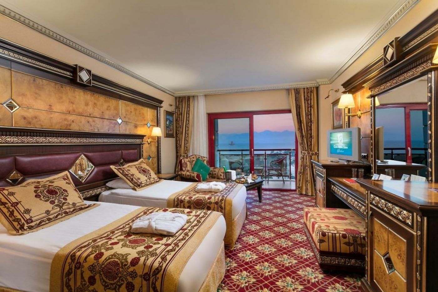 В стаите: Хотелът се състои от 5-етажна сграда Club Building, 13-етажна сграда Elegance Building и две 4- и 7-етажни сгради Park Sera Building. Хотелът разполага с 550 стаи с изглед към морето, градината и басейна.Стаите разполагат с централен климатик (в зависимост от метеорологичните условия), мини-бар (безалкохолни напитки, безплатно), сателитна телевизия с руски канал, Wi-Fi (заплаща се), телефон с директно избиране, вана или душ, сешоар, халат и чехли (при поискване), сейф (безплатно), балкон (някои стаи са с френски балкон), под - килим. Почистване на стаите - ежедневно, смяна на спално бельо - 3 пъти седмично.