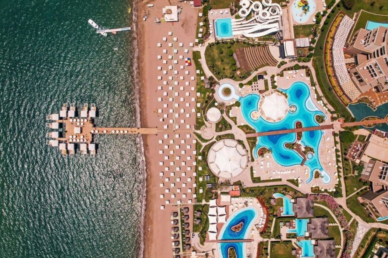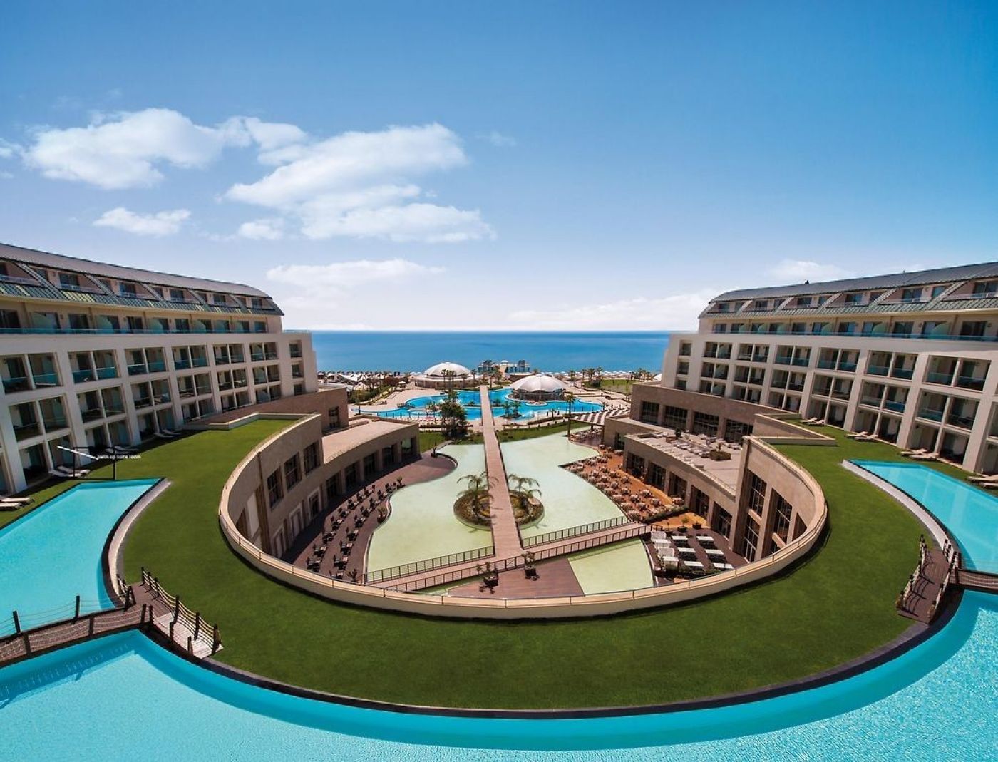Разположение: Хотелът се намира на 27 км от летището в Анталия, на 35 км от центъра на града и на 2,5 км от селището Кадрие, на брега на морето. Построен е през 2013 г. върху територия с обща площ от 120 000 м2.