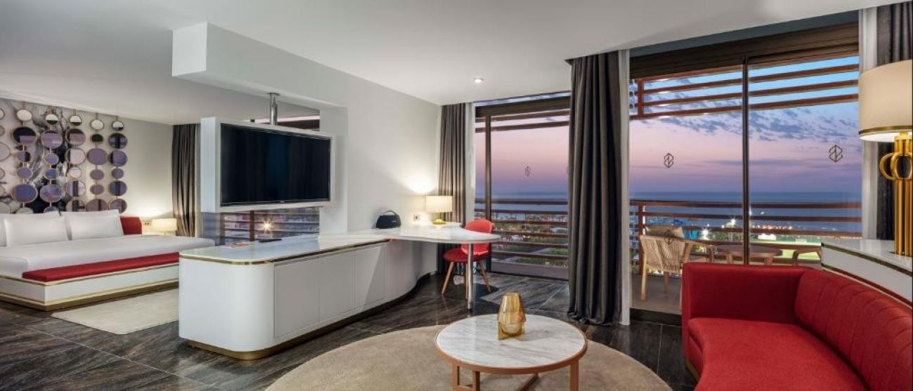 В стаите: Хотелът разполага с общо 579 стаи - 551 Superior Room Sea / Land View (32м2), 18 Family Suite Sea / Land View (56м2), 8 Deluxe Suite Sea View (60м2), 2 King Suite Sea View (120м2). Всички стаи са оборудвани с климатик, телевизор, телефон, баня с душ, сешоар, сет за кафе/чай, минибар, сейф, балкон.