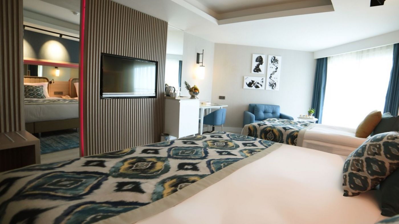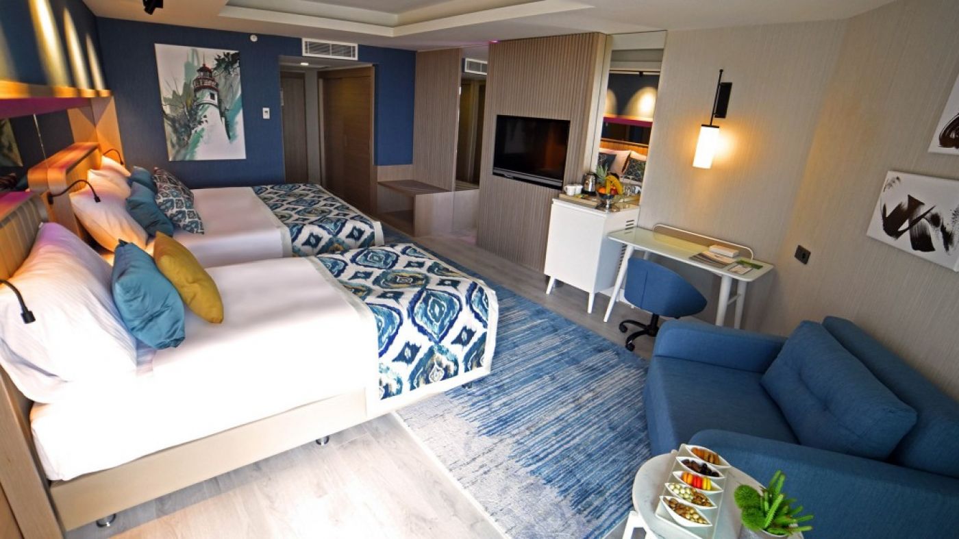 Разположение: Хотелът е разположен на 15 км от летището в Анталия и на 17 км от центъра, на брега на морето. Построен е през 2005 г. върху територия с обща площ от 72 000 м2. Състои се от една 10-етажна сграда. Направена е пълна реновация през 2019 г.