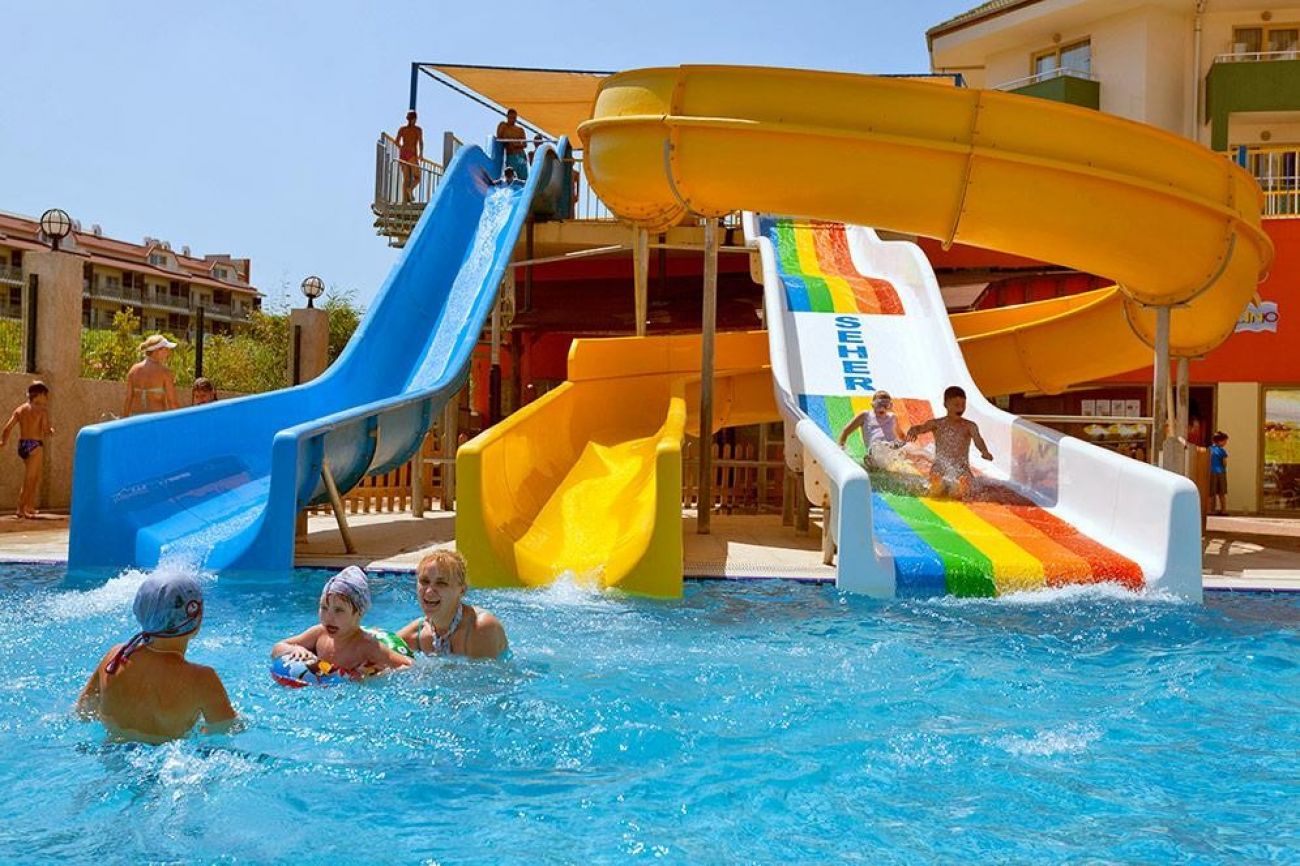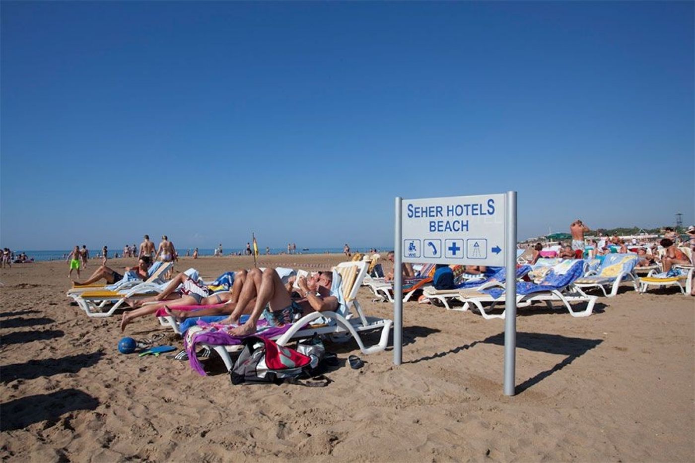 На територията на хотела: Основен ресторант, два а-ла-карт ресторанта, пет бара, два открити басейна, водни пързалки, SPA център със закрит басейн, турска баня и сауна, фитнес център, фризьорски салон, аеробика, баскетбол, тенис корт с твърдо покритие (в хотел Seher Resort & SPA), тенис на маса, дартс, боча, дискотека, безжичен интернет в лоби.