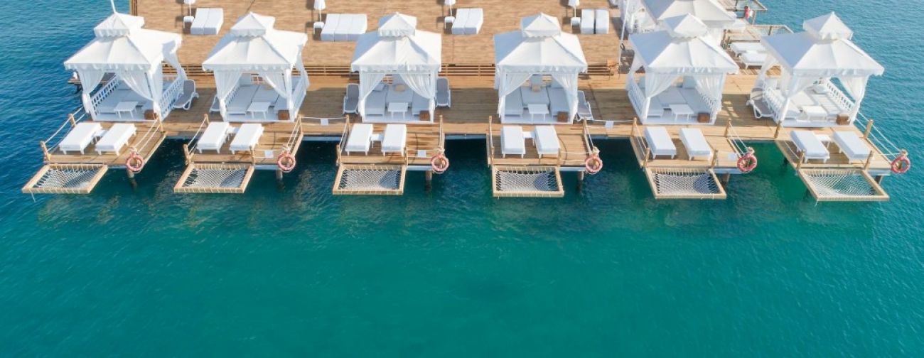 На територията на хотела: Основен ресторант, 3 а - ла - карт ресторанти (италиански, турски и рибен), 3 открити басейна, закрит басейн, закрит детски басейн, водни пързалки, барбекю, сладкарница, лоби бар , диско бар, витамин бар, боулинг бар, амфитеатър, кино, музика на живо, дискотека (безплатно).