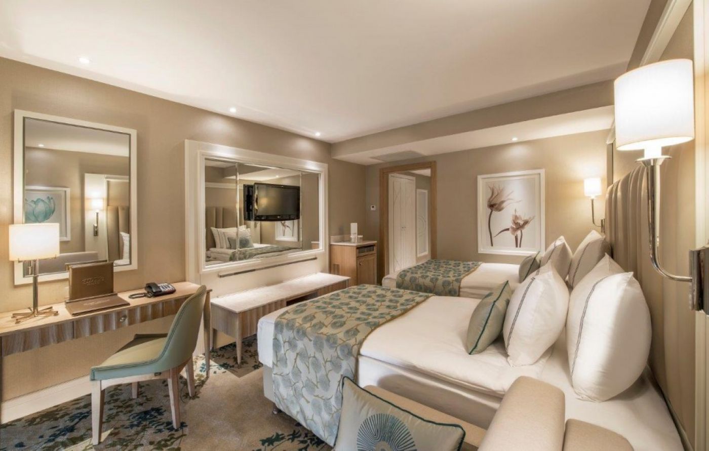 В стаите: Хотелът разполага с 586 стаи. Всички стаи са оборудвани с: централен климатик, телевизор, телефон, сейф (безплатно), мини-бар (безплатно), килим, балкон, баня с душ, сешоар, интернет достъп (срещу заплащане). Почистване на стаите - всеки ден, смяна на спалното бельо – 3 пъти в седмицата, смяна на кърпите – всеки ден.
