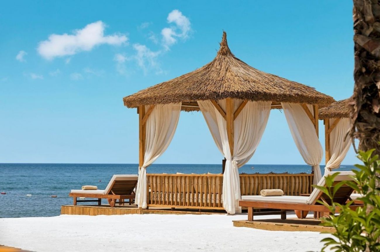 Плаж: Собствен, пясъчен плаж. Бар на плажа: безплатно. На басейна и на плажа: чадъри, шезлонги, матраци - безплатно. Плажни кърпи - безплатно.