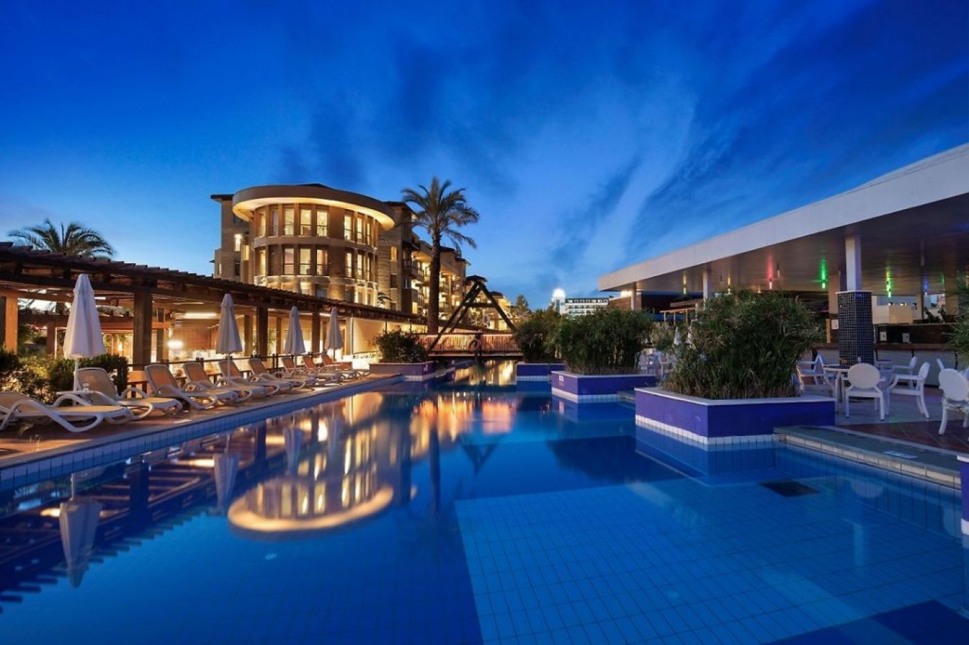 На територията: Основен ресторант, 3 A la carte ресторанта, 3 бара, 4 конферентни зали, 3 басейна (1 закрит и 2 открити), 3 водни пързалки, тенис на корт, салон за красота, СПА център, лекар, интернет в лобито на хотела (безплатно).