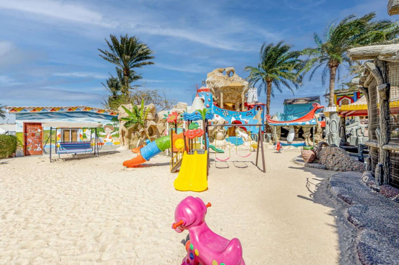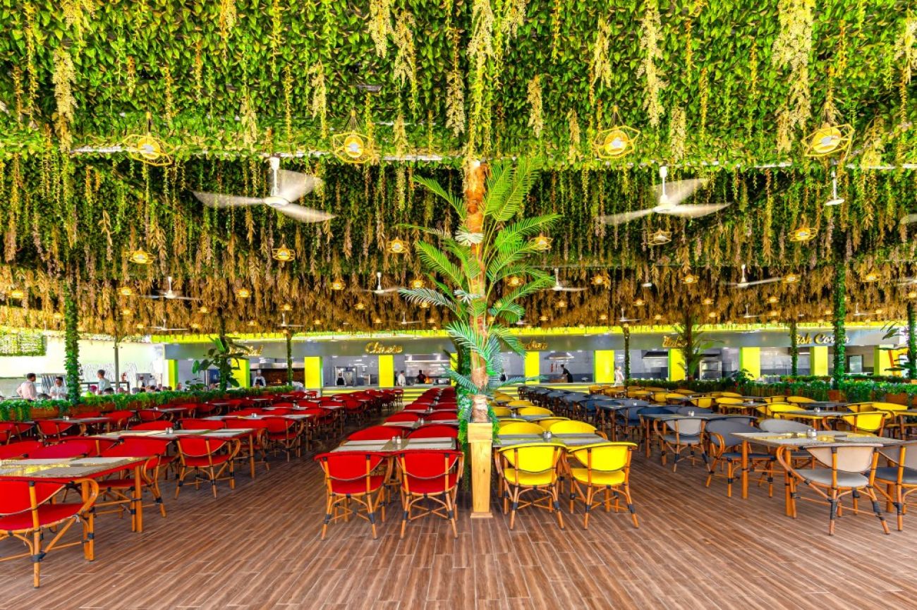 На територията на хотела: 2 основни ресторанта, 2 а ла карта, 4 бара, 5 басейнa (2 отопляеми през зимата), аквапарк (8 водни пързалки за деца и 3 за възрастни), дискотека (безплатно, напитки - платено), Wi-Fi във фоайето, платено.