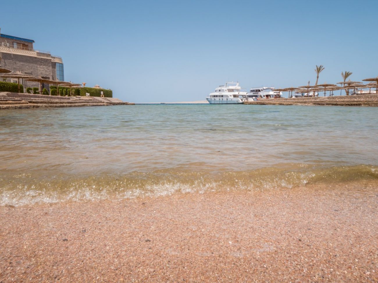 Плаж: собствен пясъчен и скалист плаж, пясъчен вход към морето, първа брегова линия. Чадъри, шезлонги, матраци, хавлии - безплатно. В близост има коралов риф и кей. Препоръчват се специални обувки. Дължината на плажа е 675 м.