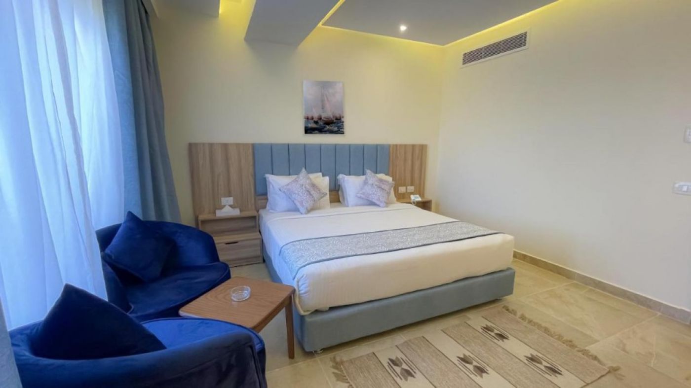 Местоположение: На 20 км от летище Хургада, на 24 км от центъра на града, на самия бряг на морето.