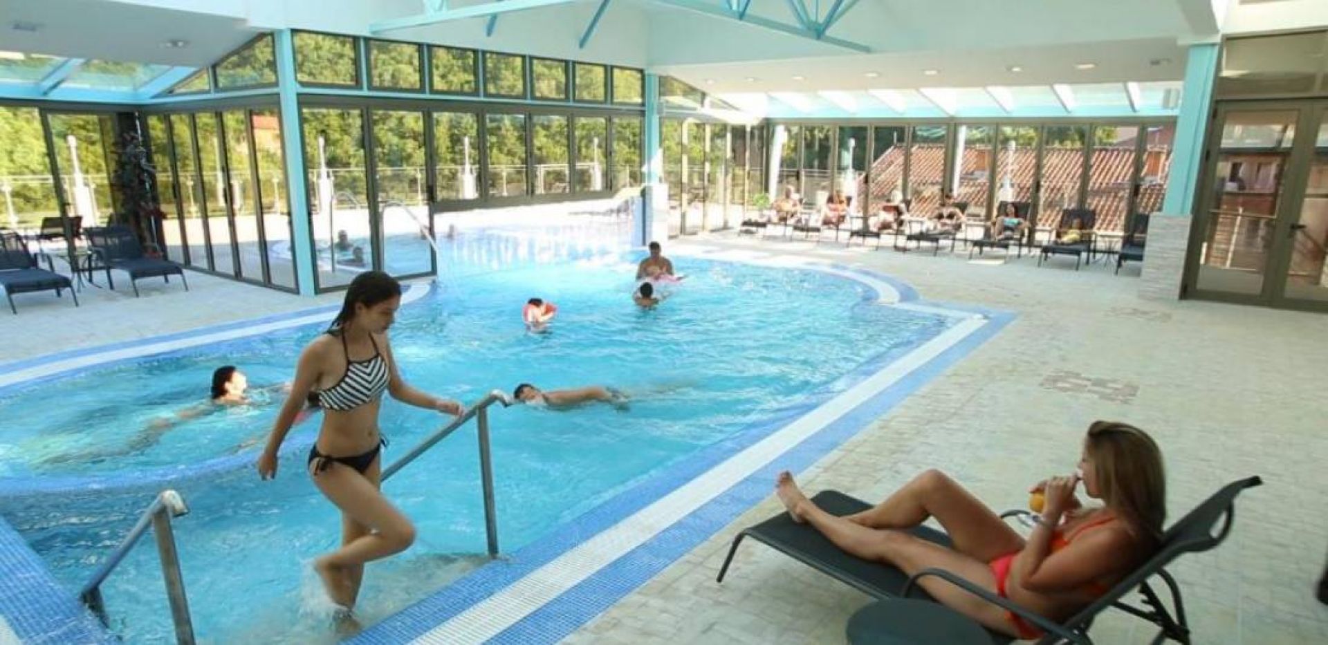 СПА център: Уелнес центърът на хотела предлага вътрешен и външен басейн, сауна, парна баня, джакузи, тепидариум – топло помещение с подово отопление и подгреваеми седалки, солна стая.