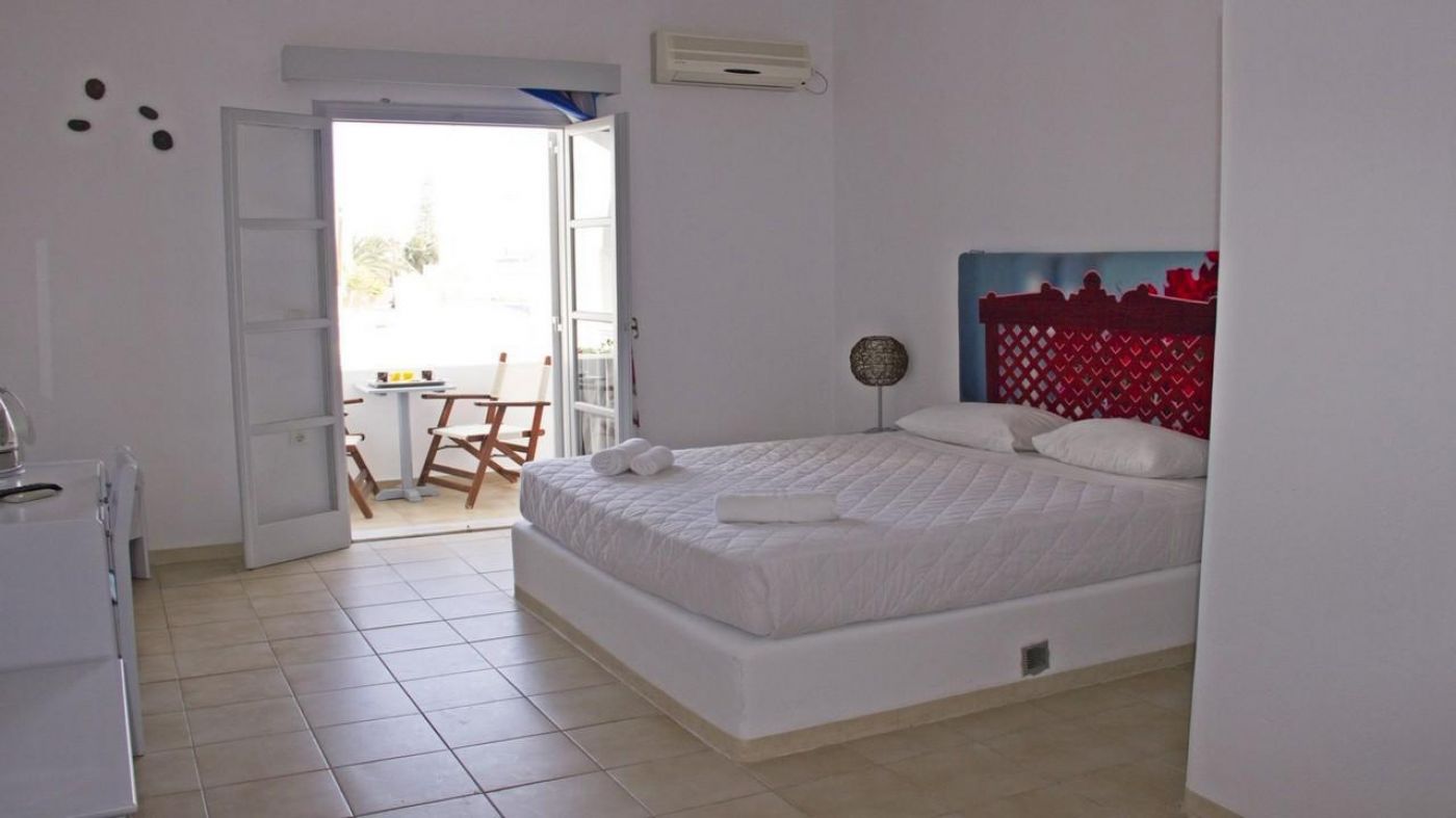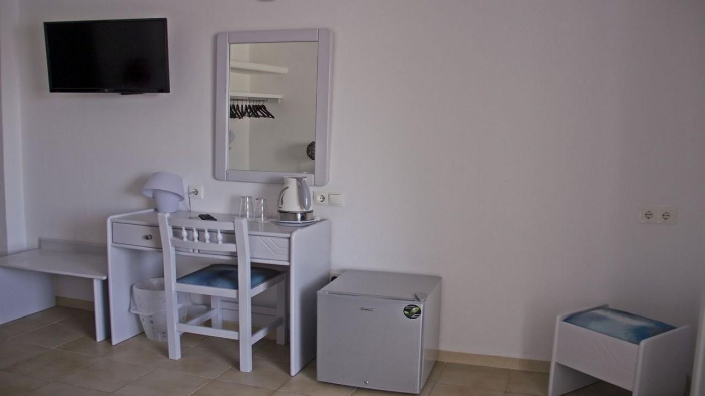 Всички стаи са декорирани в модерен цикладски архитектурен стил и разполагат с всички удобства, от които се нуждаете. Стаите са снабдени с климатик, телевизор с плосък екран със сателитни канали, хладилник, сейф, сешоар, собствена баня с душ, тоалетни принадлежности, балкон или тераса.