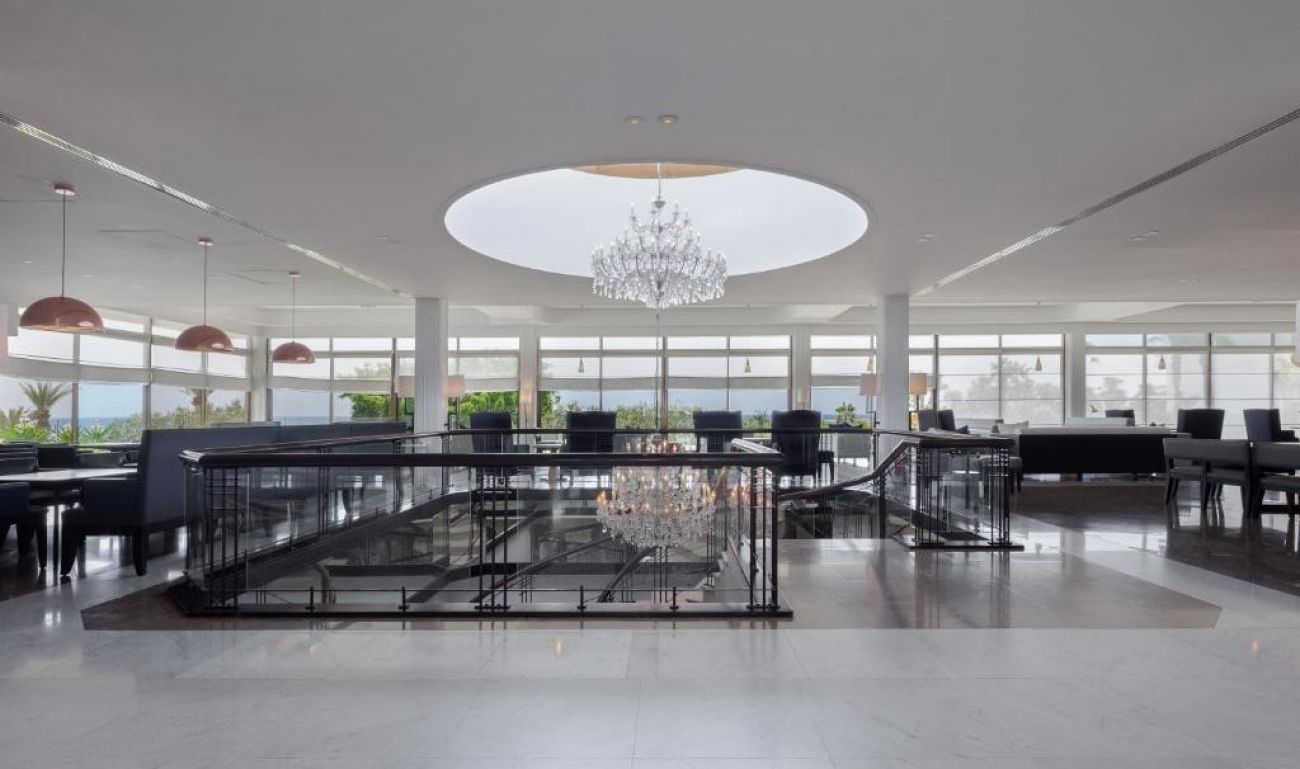 Стилният и модерен хотел е морски курорт. Разположен сред тропически градини на 5 минути пеша от пристанище Пафос. Хотелът предлага безплатен Wi-Fi, четири плувни басейна и СПА център. На разположение са също сауна и фитнес зала. Спа центърът на хотела предлага холистични процедури и масажи. Просторните стаи на хотела са оборудвани с климатик, сейф, минибар и сателитна телевизия. Стаите са с френски прозорци и тераса или балкон с изглед към градините и Средиземно море. Ресторантът на хотела сервира закуска на шведска маса, последвана от кипърска и международна кухня. В хотела има общо 4 ресторанта. Хотелът се намира в близост до летището и голф игрищата. Осигурен е безплатен паркинг.