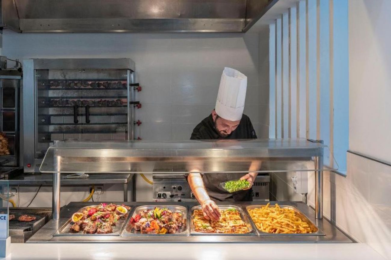 На разположение е основен ресторант, предлагащ средиземноморска кухня, има и детски бюфет. Има също кафене и бар.