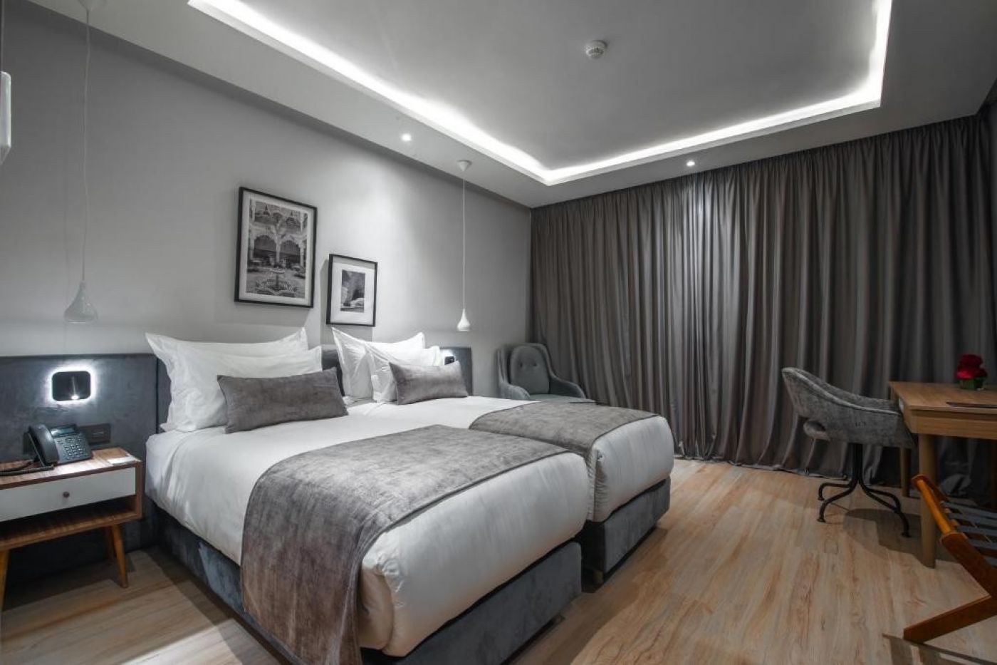 В стаите: Всички стаи и суитс предлагат комфортни легла, сейф, сешоар, сателитна телевизия, луксозна мебелировка, кана за чай и кафе, room service, висок клас бани. Standard Room и Standard Room Pool View предлагат гледка към басейна и зона за работа. Deluxe стаите са с тереса и гледка към градинте, басейна или морето. Dominium Suite предлага всичко това, също и хол с разтегателен диван и масичка; Family Deluxe Room-две отделни спални, разделени с врата. Executive Suite и Ambassador Suite, са комфортни апартаменти с най-привилегированата гледка към морето и Агадир.