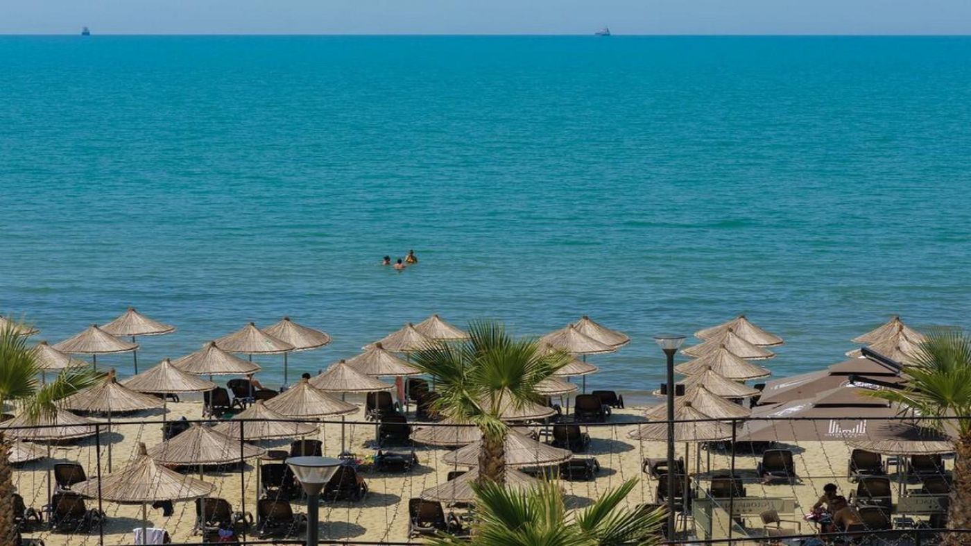 - Частен пясъчен плаж с шезлонги и чадъри