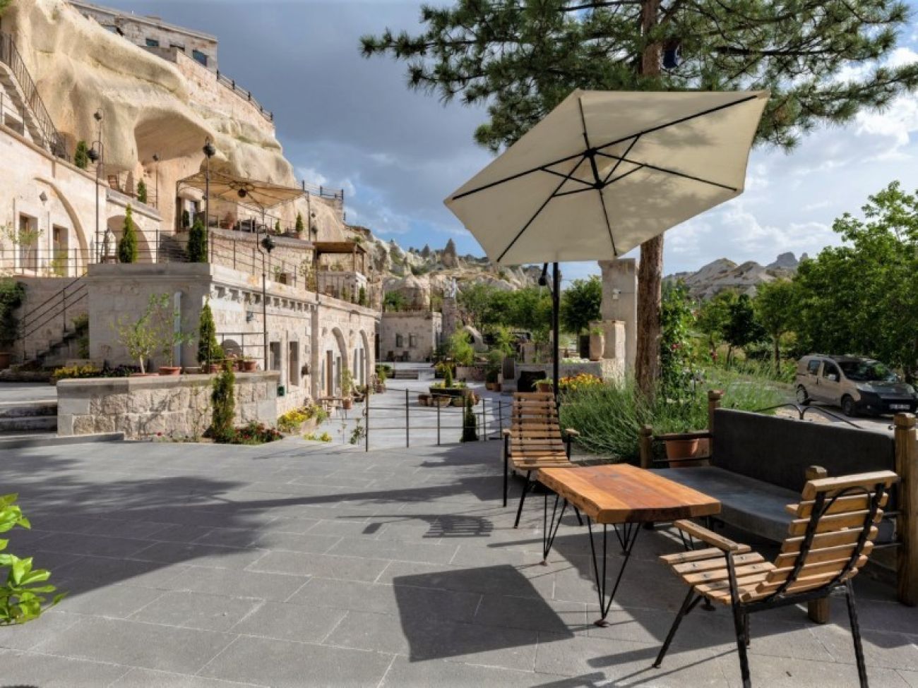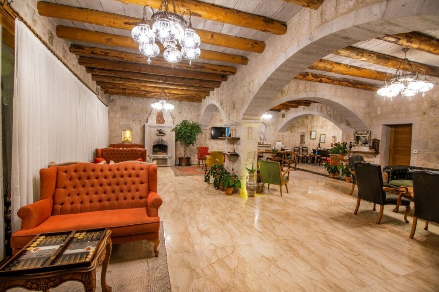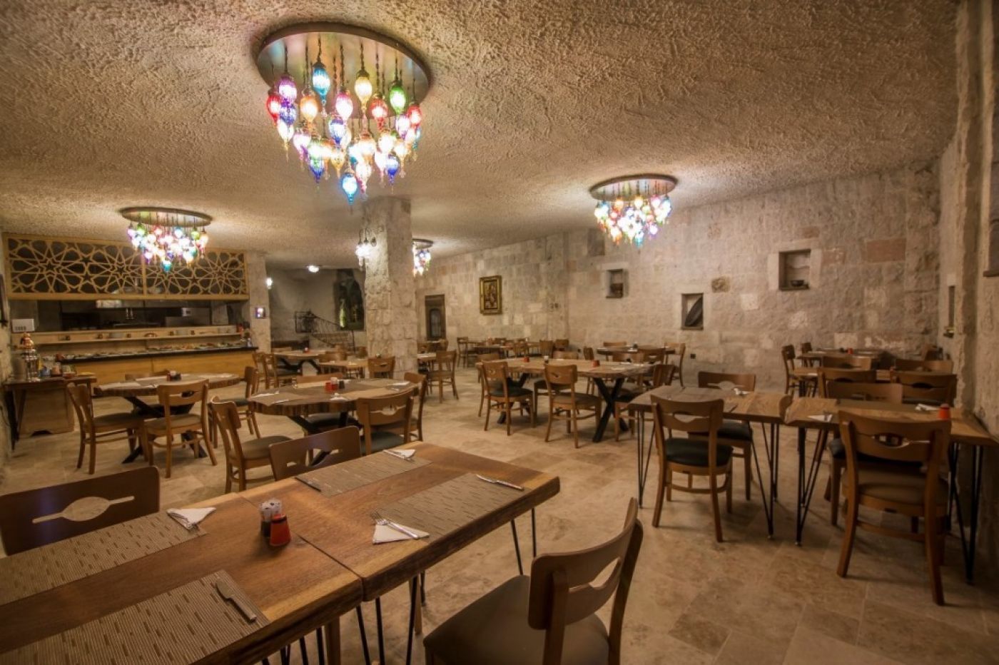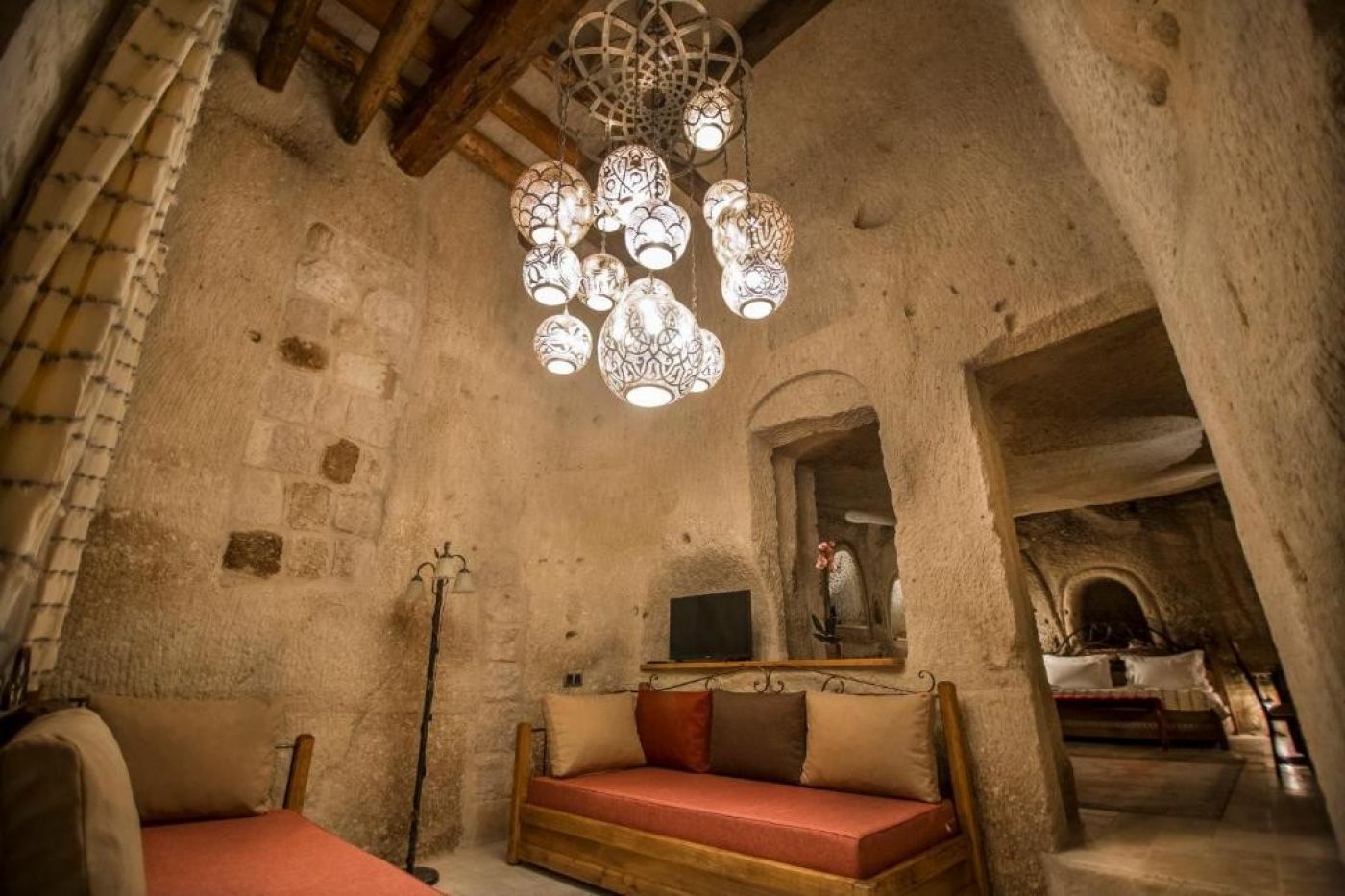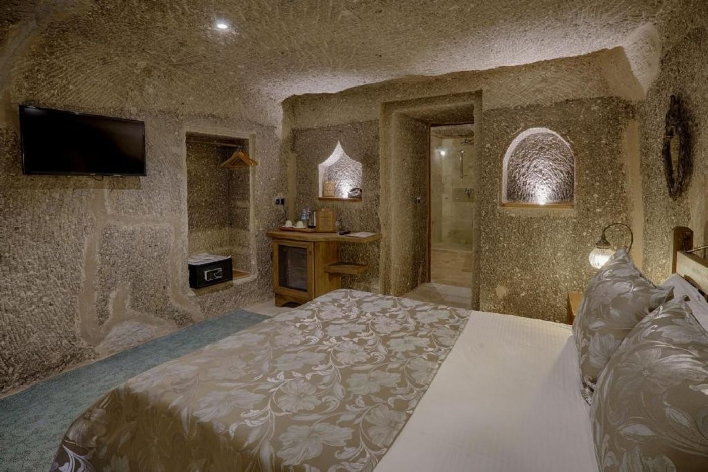 Стаи: Хотелът е визуална наслада. Всяка стая, ъгъл и тераса са декорирани с вкус с артефакти, показващи уникалната история на района. Хотелът разполага 28 уникално проектирани пещерни стаи. Всяка стая разполага с климатик, телевизор, телефон, сейф, минибар, сешоар, самостоятелна баня с душ, някои имат и вана, тоалетни принадлежности.