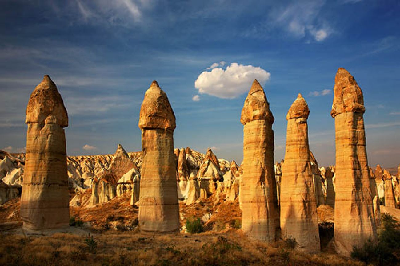 Посещение на национален парк Гьореме* (под егидата на ЮНЕСКО) и пещерните църкви, украсени със стенописи.Въображението ви ще се провокира от мистичните скални стени, пирамиди и конусообразни образувания с вулканичен произход. Посещение на долината Пашабаг, известна оше като долината на приказните комини, където ще видите туфи с характерните базалтови шапки с височина над 10 метра, разположени на групи или изникващи самостоятелно пред погледа. Ще можете да разгледате отвън най-високото вулканично образувание – Учхисар. Същия ден ще посетите и традиционна тъкачна работилница, където ще се запознаете с цялостния производствен процес от извличането на суровината – коприна, памук или вълна – до готовия изтъкан продукт. Програмата ще завърши с посещение на гр. Аванос, в който още се практикува грънчарството, спазвайки традициите от древността. За характерните червени грънчарски изделия се използва пръст от наносите на Червената река.