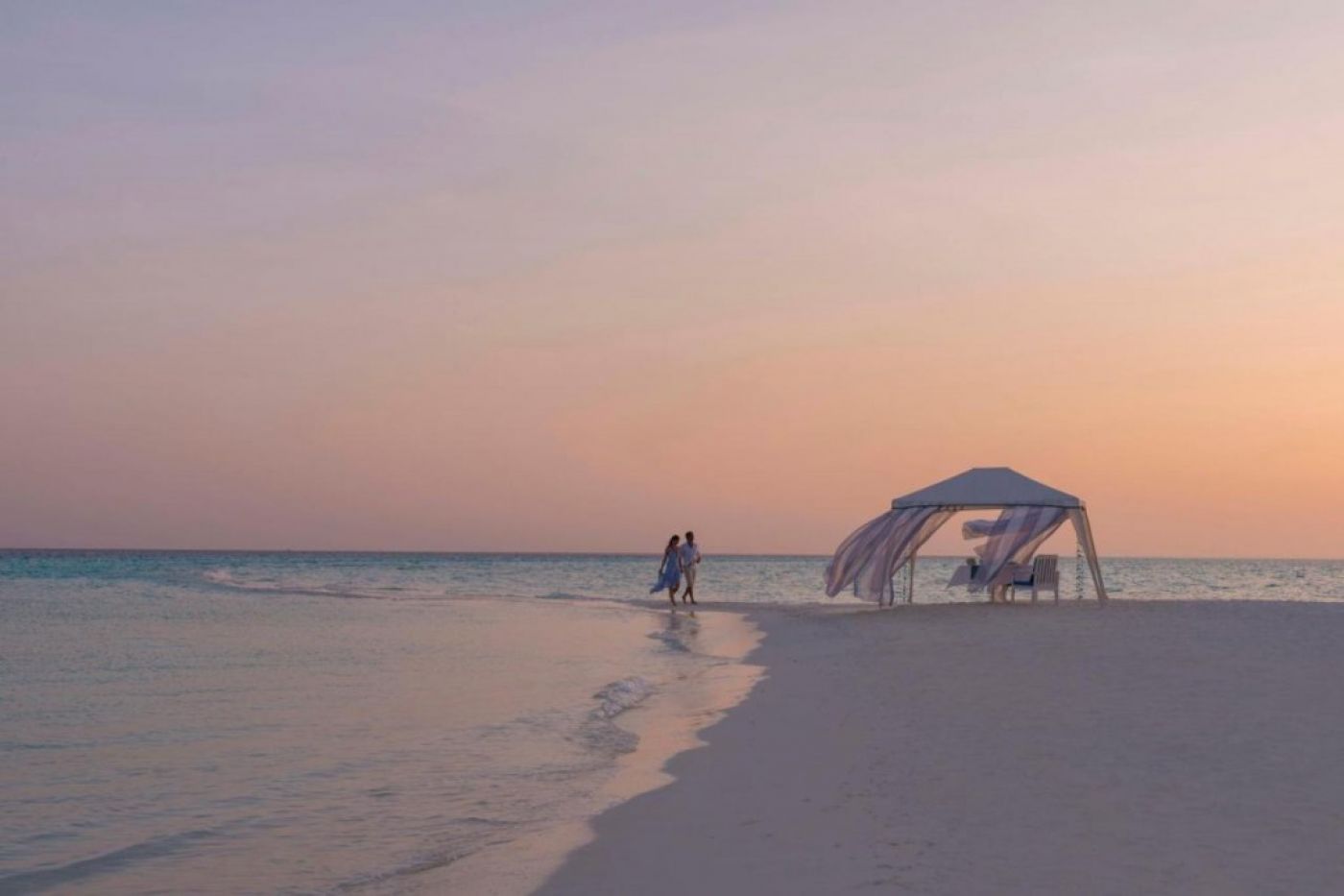 Кралска плажна вила с две спални (310 м² + 890 м² външно пространство) с две легла king, два разтегателни дивана и две бебешки легла, за до 6 възрастни или 4 възрастни и 4 деца.