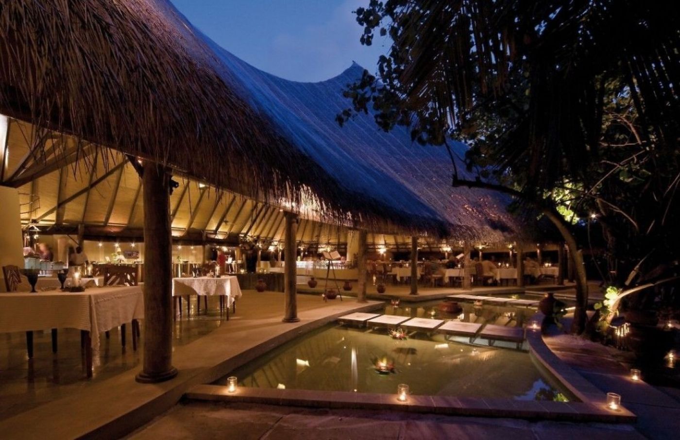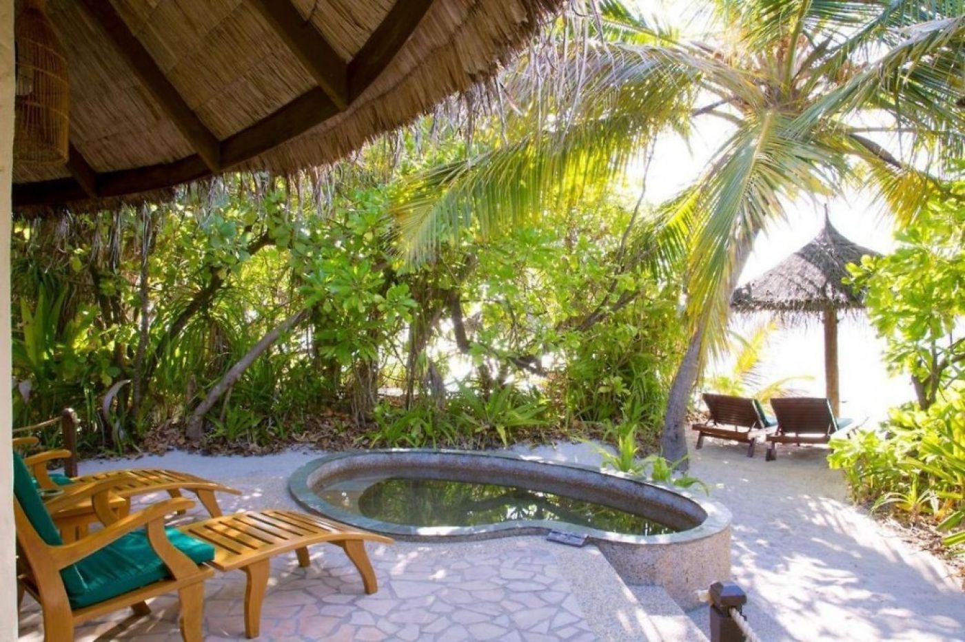 В стаите: Неговите 98 вили със сламени покриви, са изолирани и скрити от цветя, тропически папрати или палми. В хотелската стая ще намерите халат, чехли, аксесоари за баня, сешоар, централен климатик, телефон, минибар, удобства за приготвяне на чай и кафе, хладилник, ютия с дъска за гладене, две бутилки питейна вода на ден, безплатен Wi-Fi и сейф.