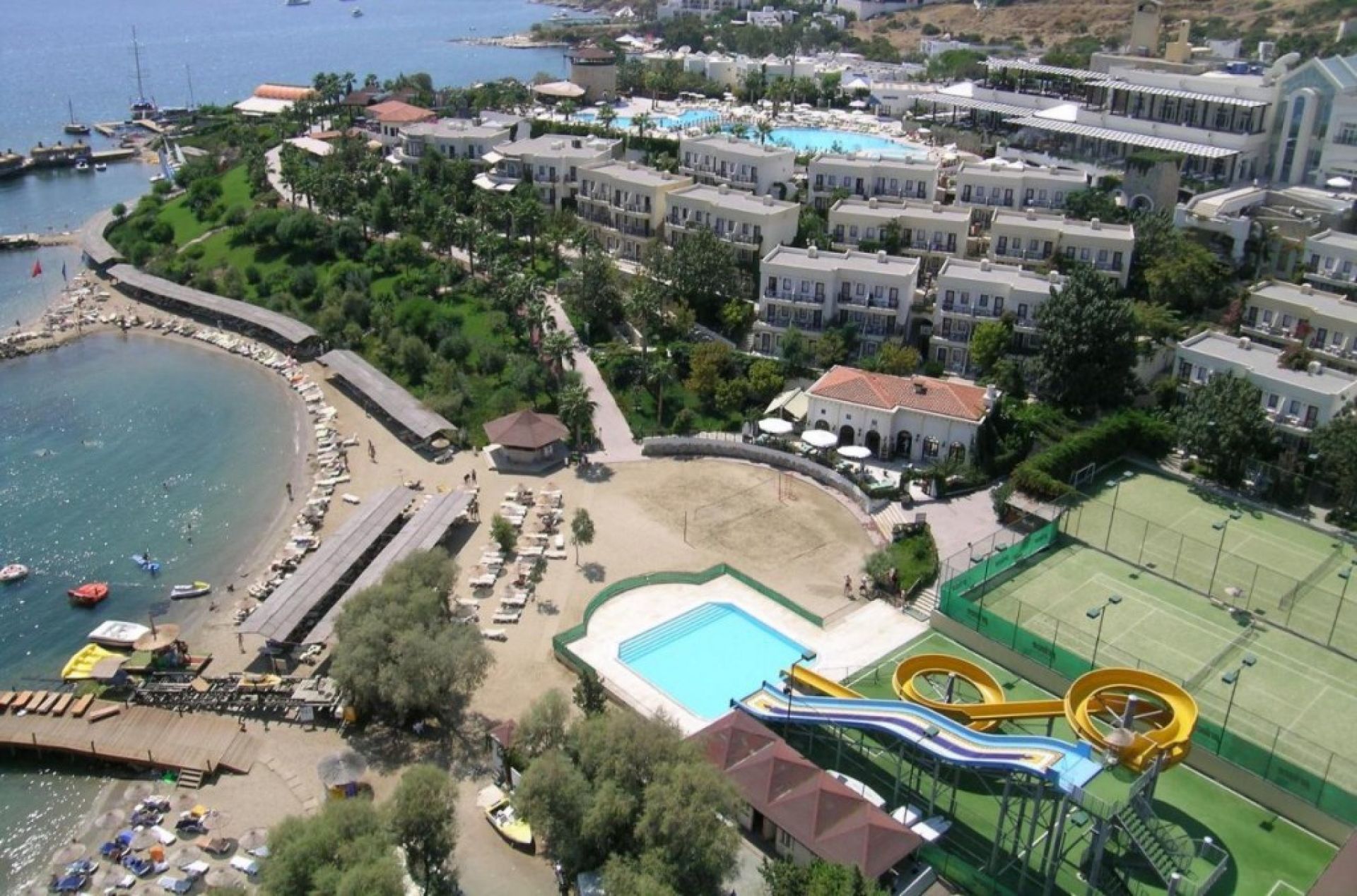 Хотелът е разположен на 35 км от летище Милас, на 4 км от центъра на Бодрум, в района на Гюмбет, на брега на морето. Разполага с обща площ 38 000 m², последно реновиран през 2023 г.