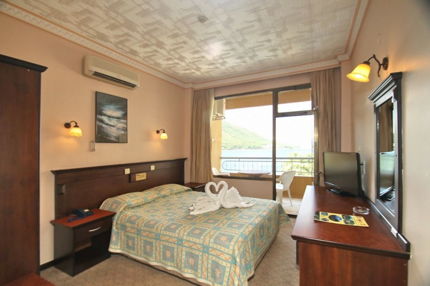 - Стандартна стая с изглед море - разполагат с 1 двойно или 2 единични легла. Максимално настаняване 2 възрастни с 1 дете или 3 възрастни.