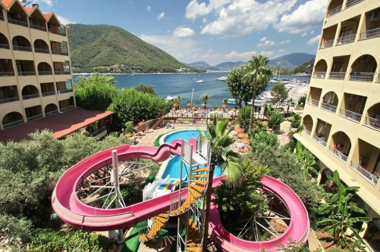 Golmar Beach Hotel е тривезден хотел, намиращ се на 8 км от центъра ма Мармарис и на 105 км от летище Даламан. Хотелът предлага богата All Inclusive концепция с местни и вносни алкохолни и безалкохолни напитки. Хотелът се състои от три блока и има общо 170 стаи, които можете да видите красив морски пейзаж от балконите. От страната на трите басейна има две водни пързалки, които са направени, за да направят почивката ви по-забавна. Пристанището на Ичмелер се намира в непосредствена близост до хотела.