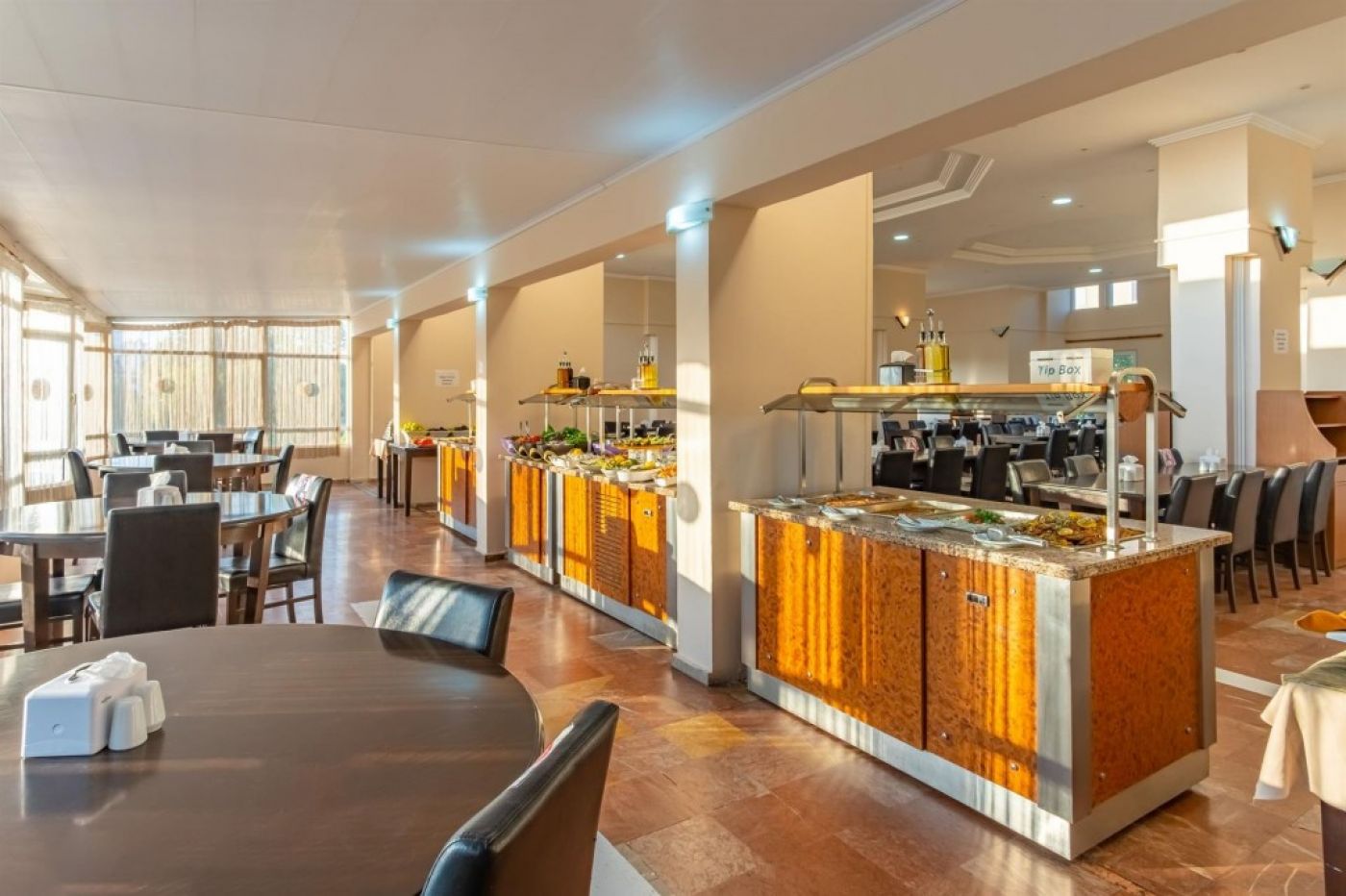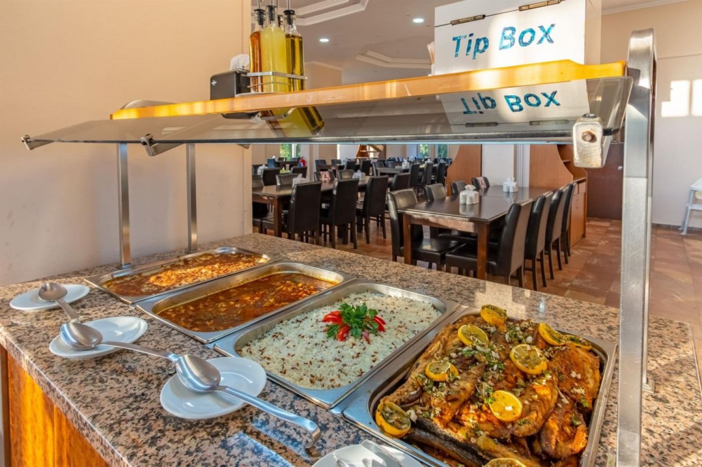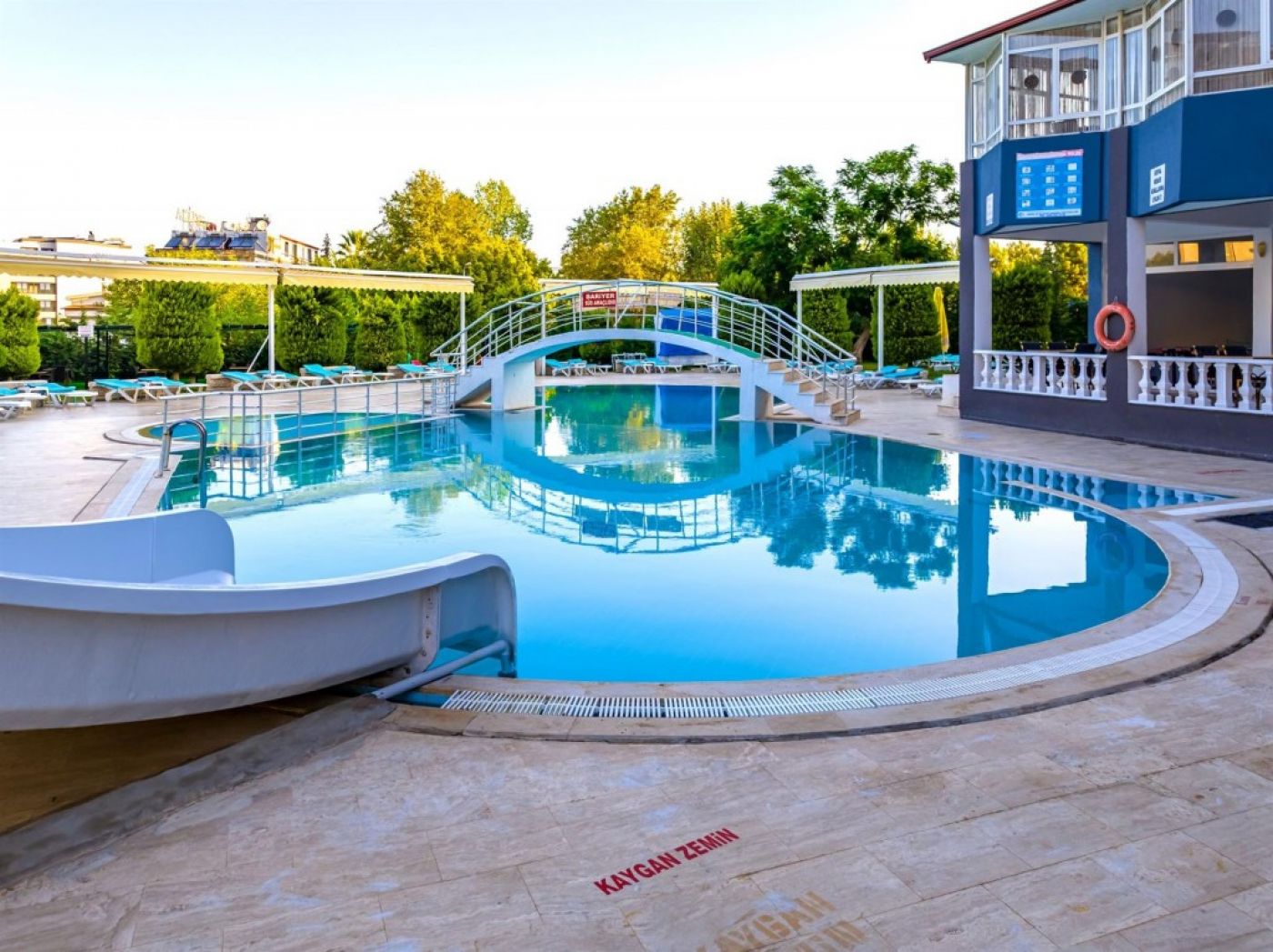 Oсновен ресторант, 2 бара , открит басейн, фитнес, магазини, паркинг.За децата: детски басейн, водна пързалка, мини клуб.Безплатни услуги: волейбол, мини футбол, тенис на маса, билярд, кино, лека анимация, Wi-Fi (в лоби)Платени услуги: вносни напитки, фрешове и бутилирани напитки, Rent a Car, велосипеди под наем, фризьор, лекар, химическо чистене, сейф, водни спортове.