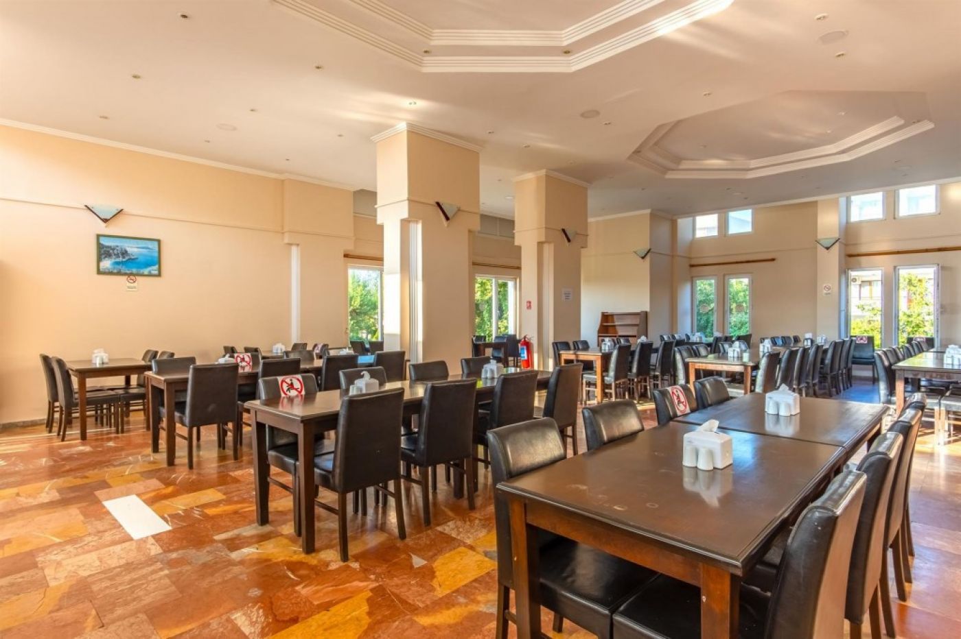 Хотелът разполага с 100 стаи, от които 90 стандартни (18 кв.м) и 10 фамилни (30 кв.м). Всички стаи са оборудвани с климатик, телевизор, телефон, баня с душ, сейф (срещу заплащане), балкон. Почиставне на стаите - всеки ден, смяна на спалното бельо - 2 пъти в седмицата.