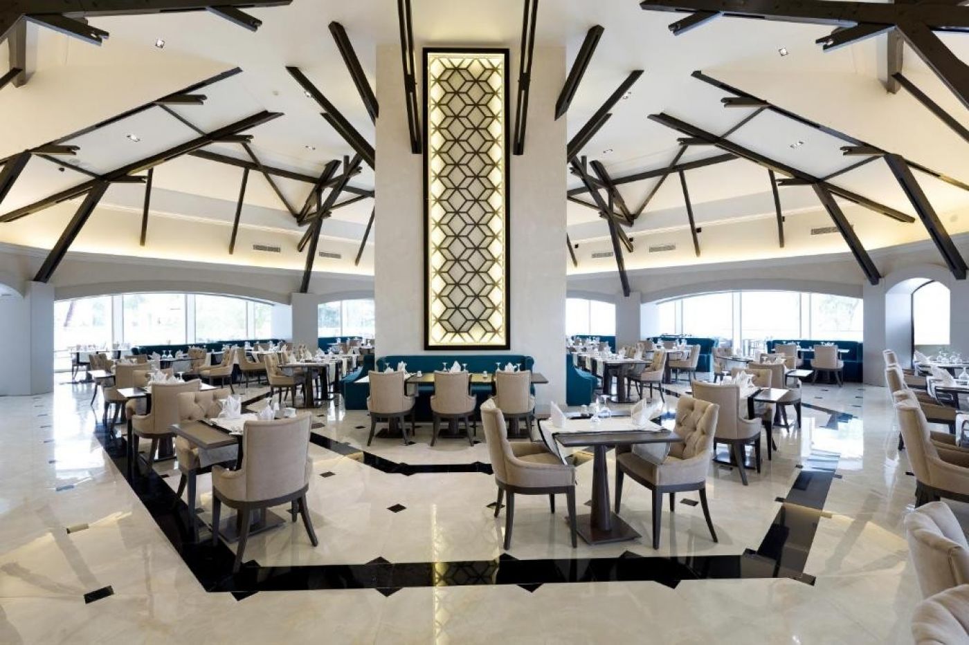 Основен ресторант, 2 a-ла-карт ресторанта (рибен, турски - с предварителна резервация), 6 бара, сладкарница, 2 открити басейна, аквапарк, СПА център, магазини, дискотека, паркинг.
