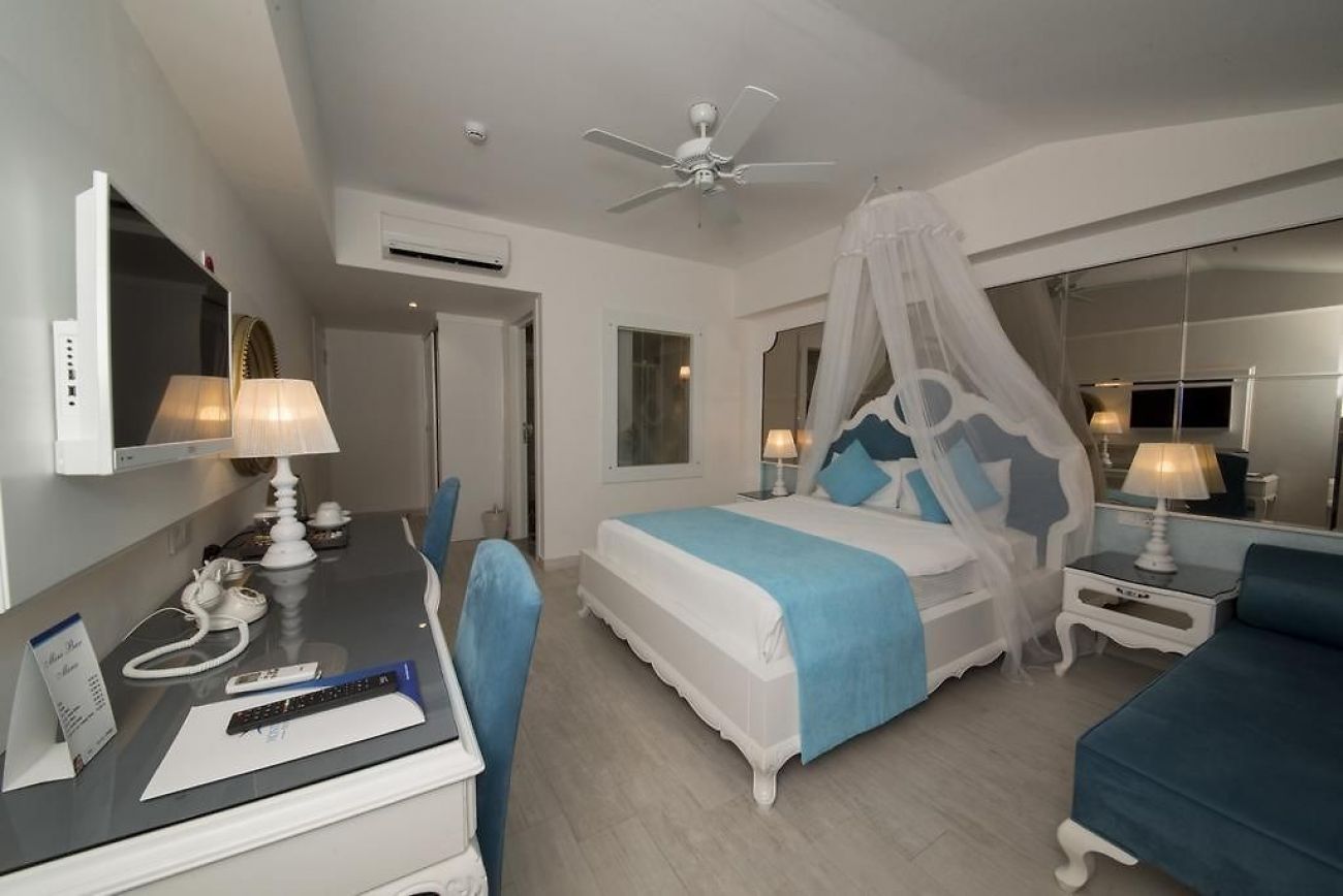 Климатизираните стаи имат балкон с гледка към зоната на басейна или към пейзажа около Олудениз. Всяка стая разполага със сателитна телевизия и минибар.