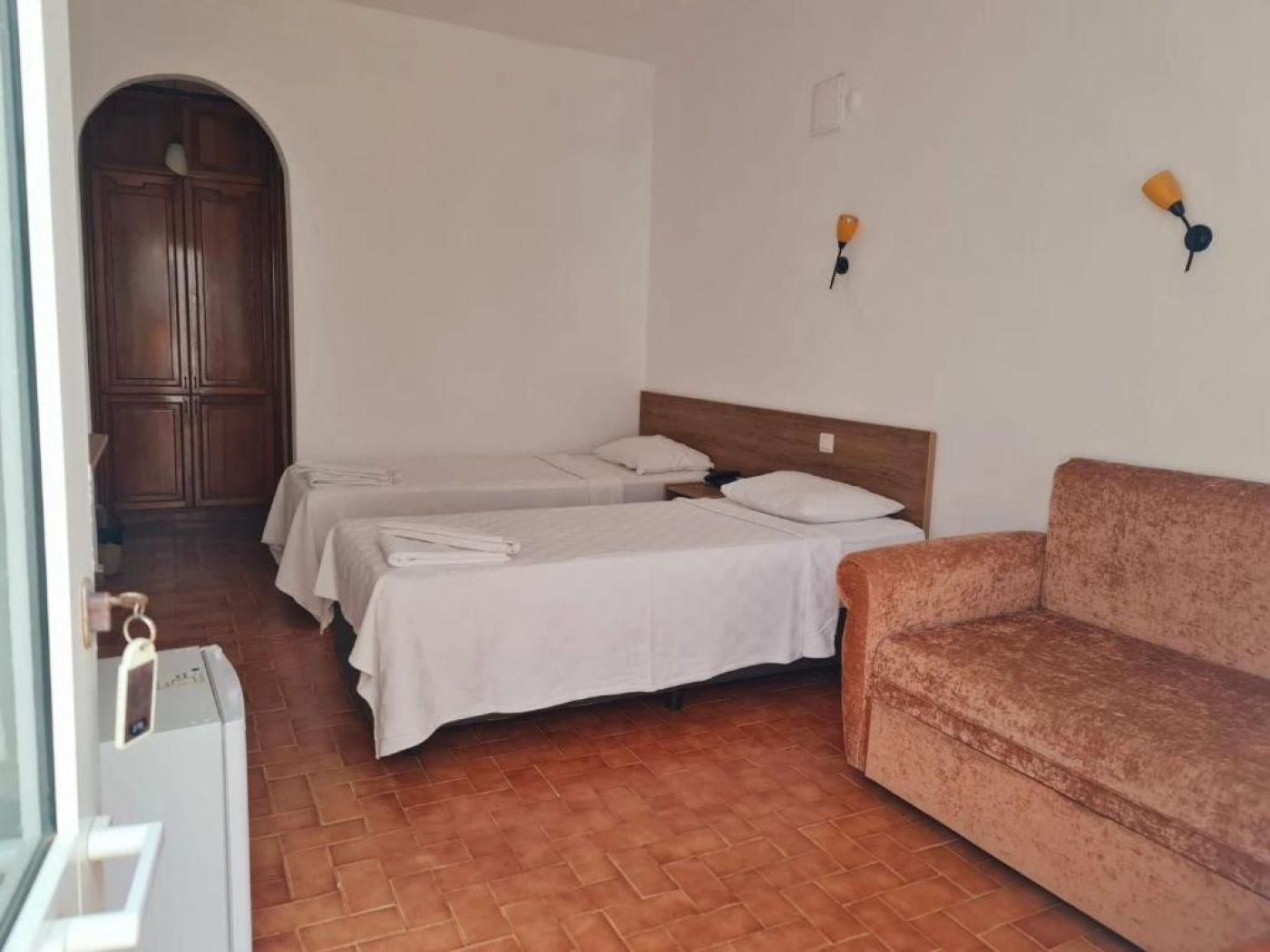 Климатик - Телевизор - Телефон - Балкон - Сейф - Сешоар - Мини бар - Кана за чай и кафе. Стаите в хотел Nagi Beach са с непретенциозно обзавеждане. Има също самостоятелна баня със сешоар. Някои стаи са с морски изглед.