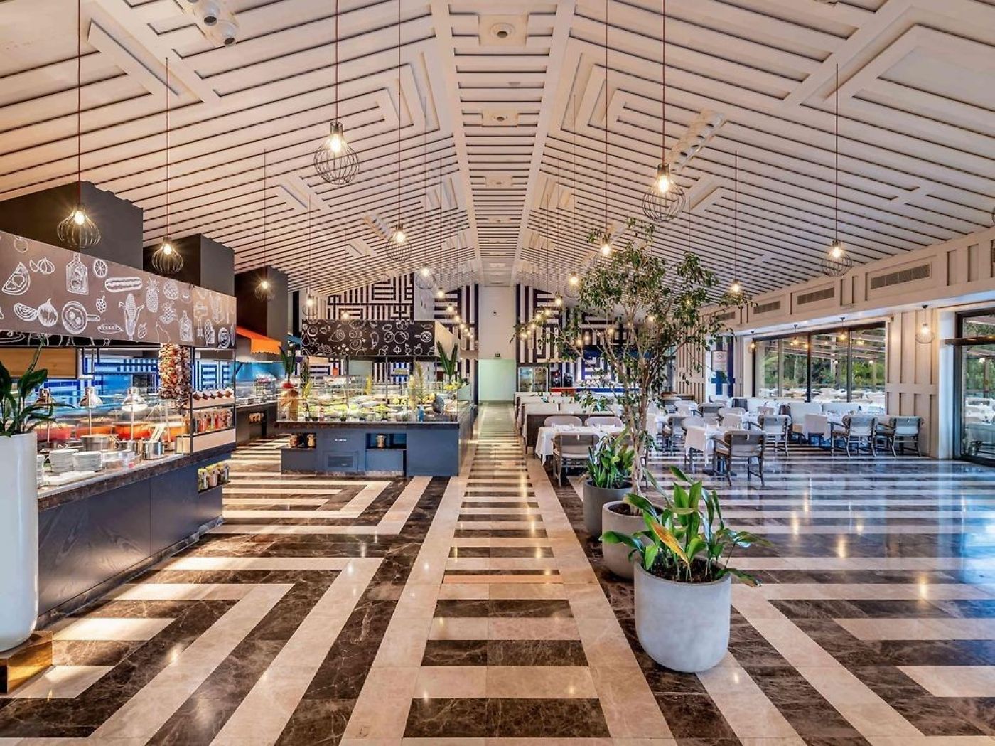 На територията на хотела: 3 ресторанта, 2 а-ла-карт ресторанта (с предварителна резервация, платени), 6 бара, 2 открити басейна (единият със солена вода- 681 m2 и 300 m2 ), магазини, СПА център, уелнес съоръжения, тенис корт, паркинг. Безплатни услуги: Сауна, турска баня, фитнес, парна баня, аеробика, водна гимнастика, плажен волейбол, тенис, зумба, уроци по йога, уроци по танци, дартс, мини футбол, WI-FI интернет.