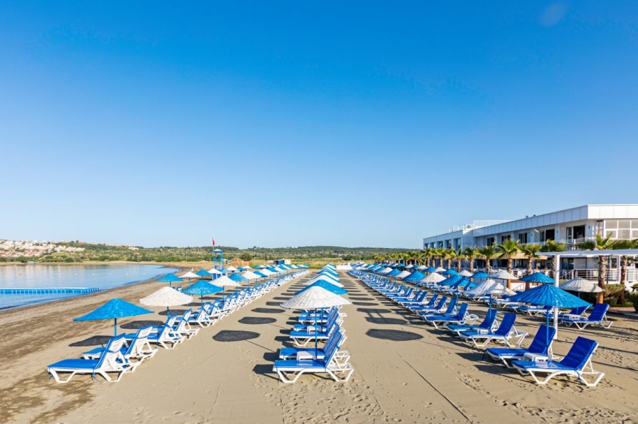 Разположение: Хотелът се намира на 50 км от Измир, на 200 км от летище Милас-Бодрум, на 5 км от Сефирихисар, на 2 км от селището Сигачик, на брега на морето. Централното му местоположение улеснява стигането до интересни исторически места за разглеждане.
