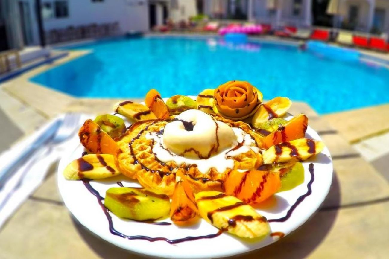 Във вътрешния и в открития ресторант се предлагат местни турски ястия и интернационална кухня. Снек-барът предлага освежаващи напитки и леки закуски
