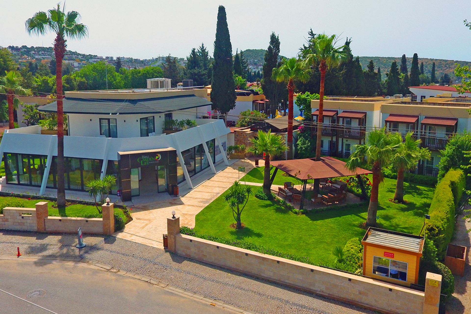 Хотелът се намира на 200 метра от брега, на 40 км от летище "Милас", на 6 км от Бодрум, в залива Битез. Общата територия на хотела 7 000 кв.м. Последни реновации са правени през 2012 г. и 2017 г.