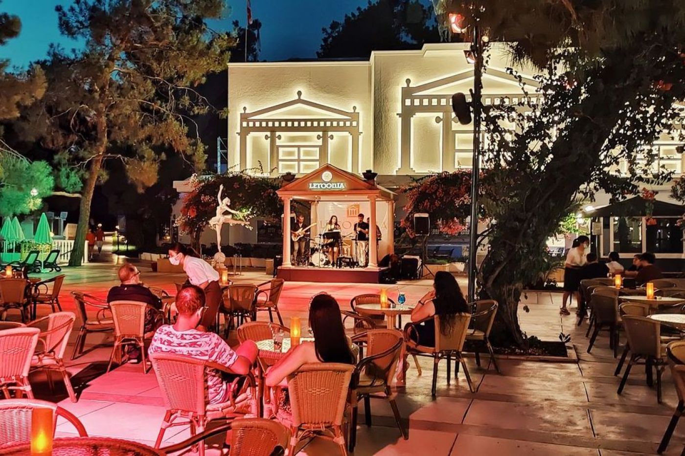CLUB & HOTEL LETOONIA има 3 собствени плажа и малко яхтено пристанище (до 30 яхти). Предлага удобството и на 3 открити басейна, всеки от които има и детска секция; 2 детски басейна (единия от тях с водни пързалки), 3 водни пързалки (завършват в морето). На плажа и при басейна шезлонги и чадъри и матраци се предоставят безплатно;