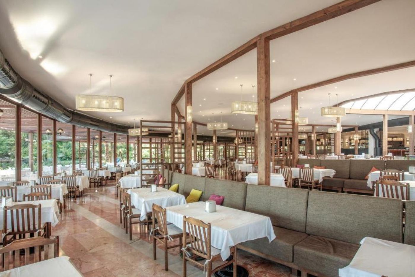 На разположение на гостите са основен ресторант и 2 а`ла карт ресторанта: İvriz Restaurant - Fish and Sea Food и Ristorante Roma. Освежаващи напитки и закуски се сервират в 8 бара. Ultra All Inclusive – закуска, обяд, вечеря и междинни хранения на блок маса; местни алкохолни и безалкохолни напитки - без лимит.