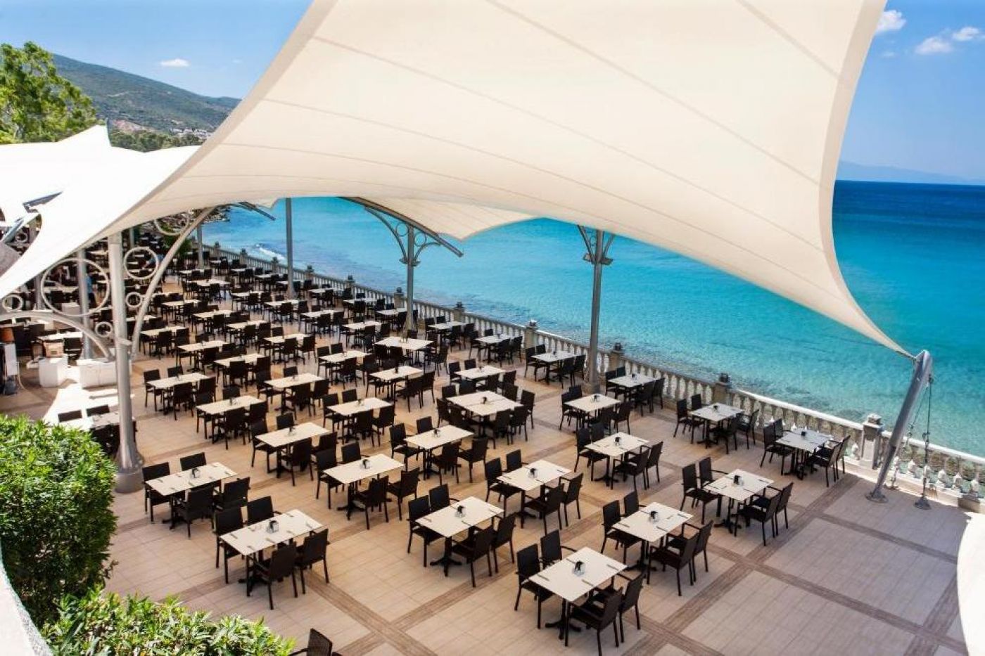 Tusan Beach Resort се намира на брега на морето, сред зеленината на градина и с чудесна гледка към морето. Летище "Милас" отстои на 110 км от хотела, центърът на Кушадасъ и на 5 км, аквапаркът е на 2 км.
