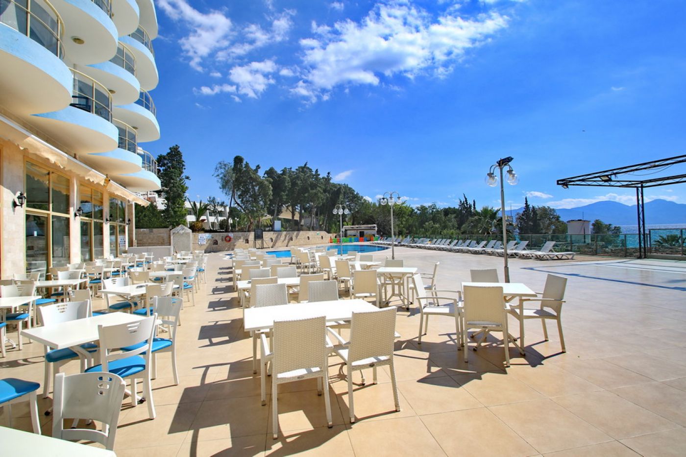 Arora Hotel е на 114 км от летище Бодрумс, разположен е на 5 км от центъра на Кушадасъ, на брега на морето, реновиран през 2012 г., а през 2014 г. всички стаи са частично реновирани.