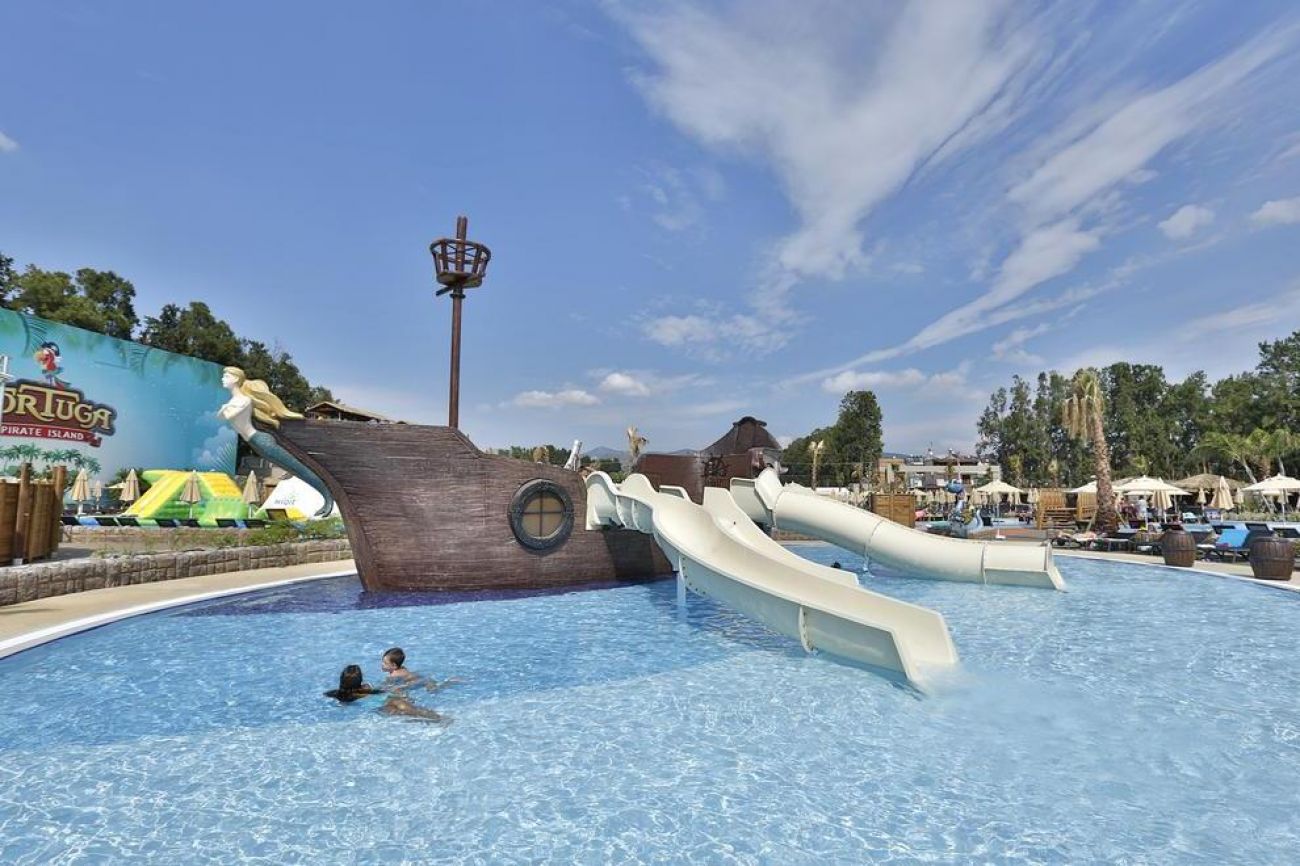 Хотелът има собствен пясъчен плаж със сертификат "Син флаг", 2 открити басейна със сладка вода, неотопляеми, 210 кв.м, 380 кв.м, отворени 08:30-18:30 ч. Тортуга Аква и тематичен парк (безплатен вход): 14 водни пързалки, отворени 10:00-18:00 ч. (храна и напитки срещу заплащане). Чадъри и шезлонги на плажа и при басейните се предоставят безплатно.