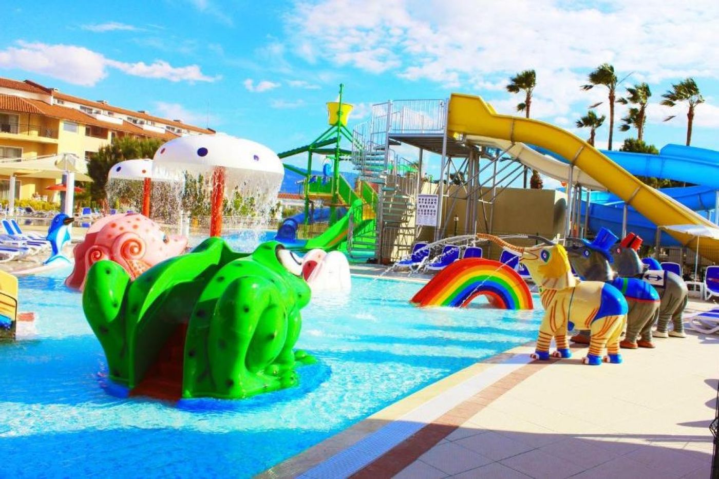 Комплексът се състои от 3-етажни сгради, в които са разпределени 410 климатизирани стаи: 208 Standard Room с изглед към морето и градината, балкони или тераси. В стаите има климатик, телевизор, сейф (срещу заплащане), сешоар, минибар, бойлер, душ, безжичен интернет (платен) и телефон. Има и 4 стандартни стаи, специално проектирани за хора с увреждания. Хотелът има 136 Family Room – стаи за 4 човека и 36 стаи за 5 човека с възможност за гледка към море и градина. Общо има 172 семейни стаи. Те имат балкон или тераса, климатик, телевизор, сейф (срещу заплащане), сешоар, минибар, бойлер, душ, безжичен интернет (платен) и телефон. Family Room Pool Suite– хотелът има 30 семейни стаи с басейн с площ от 44 кв.м, включително терасата. Семейните стаи дават възможност за влизане в басейна директно от терасата. Те са оборудвани с климатик, телевизор, сейф (платен), сешоар, минибар (платен), бойлер, душ, безжичен интернет (платен) и телефон.