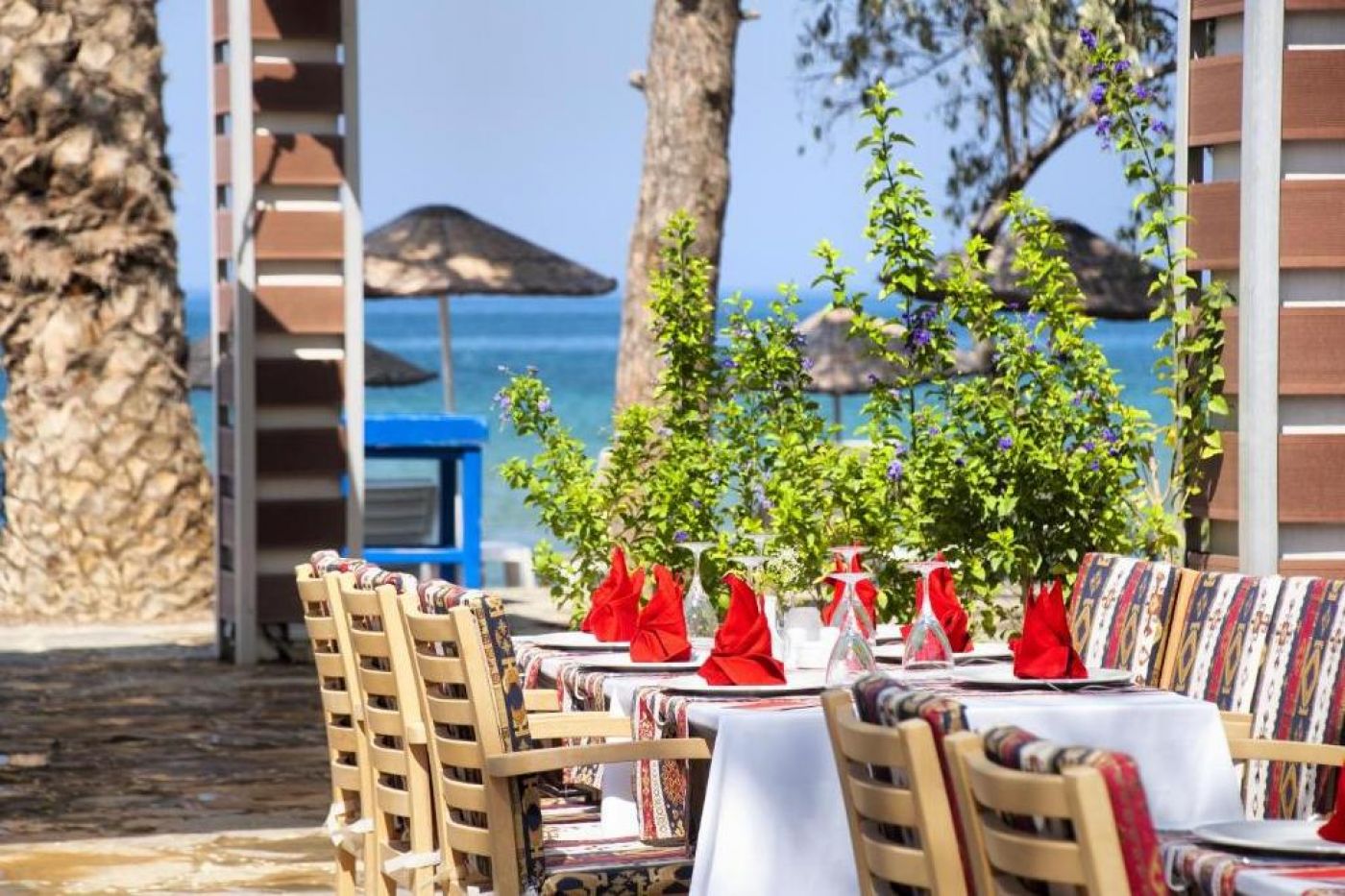 Хотелът има собствен пясъчен плаж. На територията на комплекса има 2 основни басейна (475 кв.м и 290 кв.м), 1 басейн с пързалка, 1 термален басейн и един детски басейн. Предоставят се безплатно чадъри, шезлонги и матраци, а срещу депозит може да се вземе плажна хавлия.