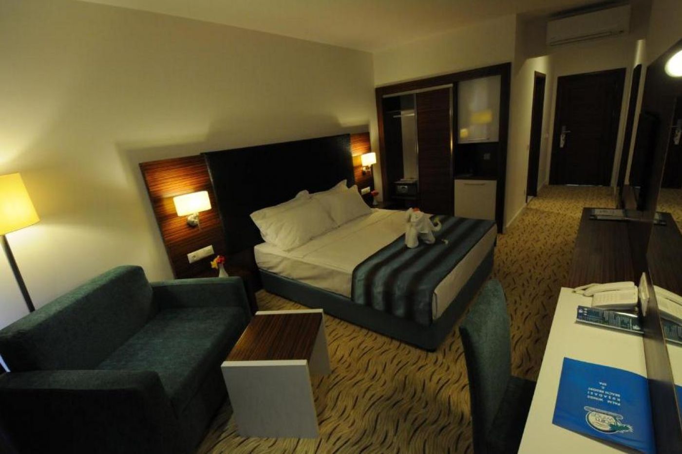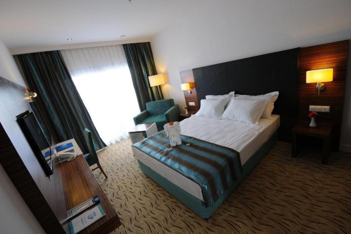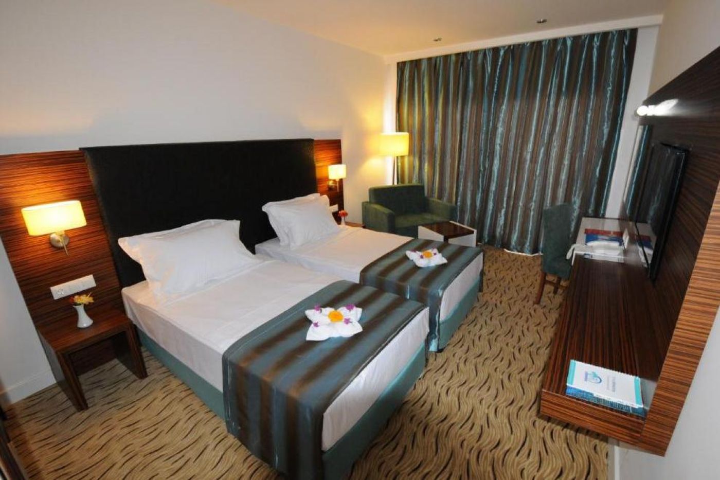 Хотелът посреща гостите си в 346 климатизирани стаи, разпределени в една 4-етажна основна сграда и две 3-етажни. Всички стаи са оборудвани с LCD телевизор, минибар, телефон, баня с душ, сешоар, сейф, балкон. FAMILY ROOM е елегантно декорирана стая с телевизор с плосък екран, климатик и самостоятелна баня, мокет на пода, гардероб, сешоар. Има 2 спални и изглед към градината. Предлага се Wi-Fi услуга. LARGE BUNK ROOM - този тип стая, която е подходяща за семейства, разполага с една голяма стая с 1 френско легло и двуетажно легло. Предлагат се телевизор с плосък екран, климатик и самостоятелна баня, душ, сешоар, сейф, мокет. Предлага се Wi-Fi услуга. STANDART ROOM има телевизор с плосък екран, климатик и самостоятелна баня, душ, сешоар, сейф, гардероб, мокет. Разполага и с балкон с изглед към градината. Предлага се Wi-Fi услуга. Стаите се почистват всеки ден, спалното бельо се сменя три пъти седмично.