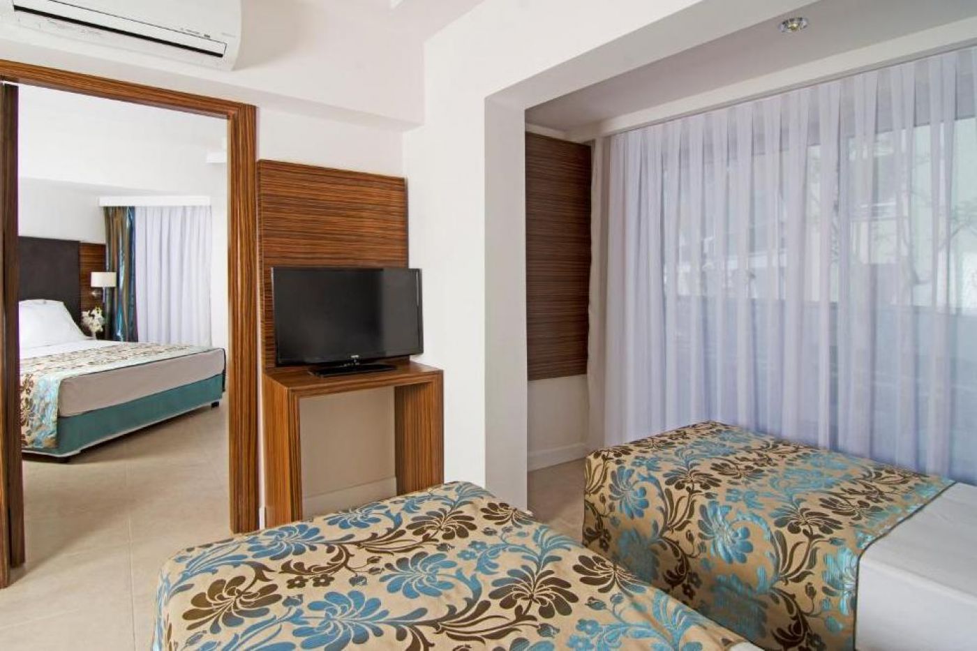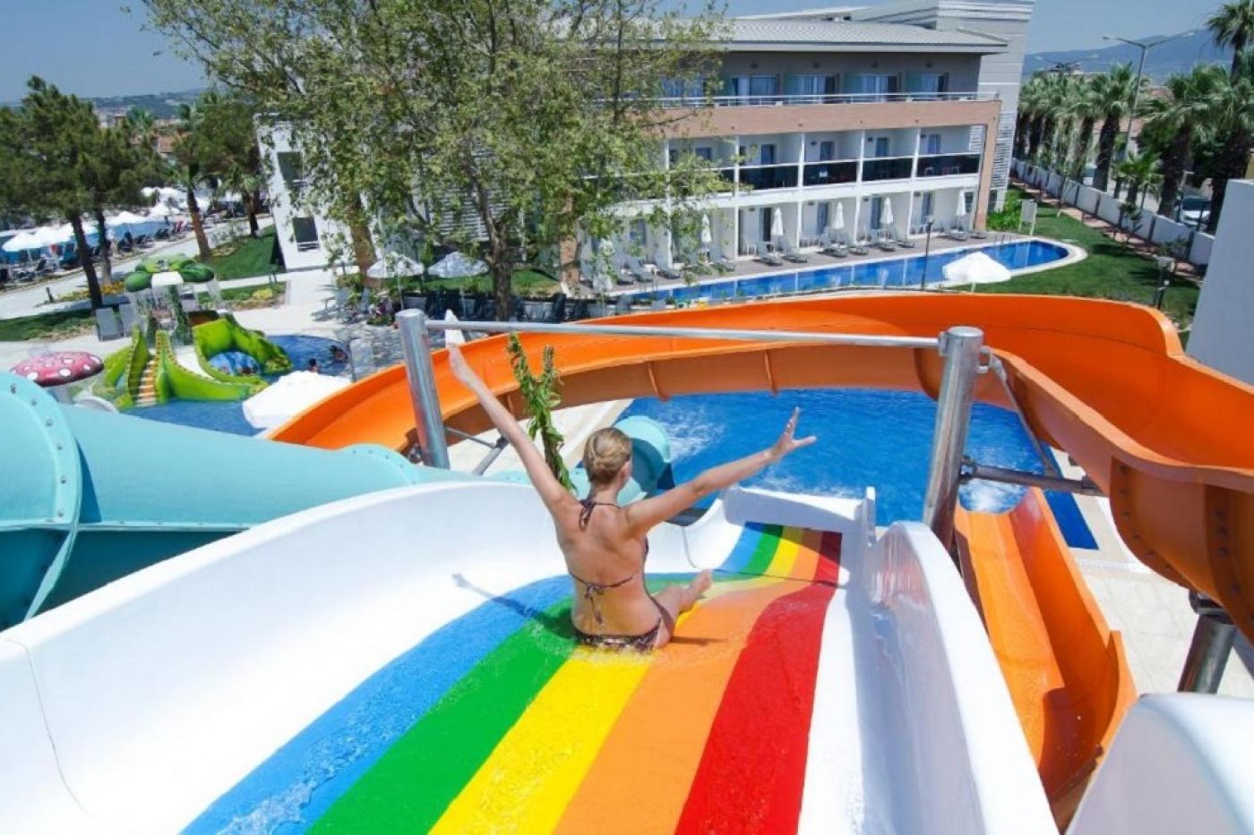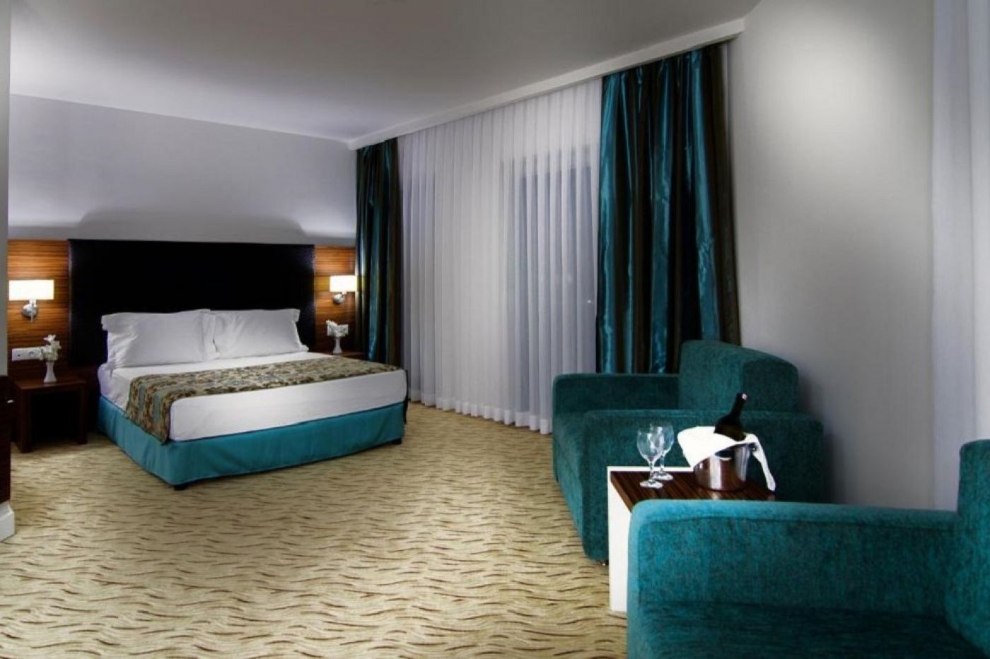 Хотелът посреща гостите си в 346 климатизирани стаи, разпределени в една 4-етажна основна сграда и две 3-етажни. Всички стаи са оборудвани с LCD телевизор, минибар, телефон, баня с душ, сешоар, сейф, балкон. FAMILY ROOM е елегантно декорирана стая с телевизор с плосък екран, климатик и самостоятелна баня, мокет на пода, гардероб, сешоар. Има 2 спални и изглед към градината. Предлага се Wi-Fi услуга. LARGE BUNK ROOM - този тип стая, която е подходяща за семейства, разполага с една голяма стая с 1 френско легло и двуетажно легло. Предлагат се телевизор с плосък екран, климатик и самостоятелна баня, душ, сешоар, сейф, мокет. Предлага се Wi-Fi услуга. STANDART ROOM има телевизор с плосък екран, климатик и самостоятелна баня, душ, сешоар, сейф, гардероб, мокет. Разполага и с балкон с изглед към градината. Предлага се Wi-Fi услуга. Стаите се почистват всеки ден, спалното бельо се сменя три пъти седмично.