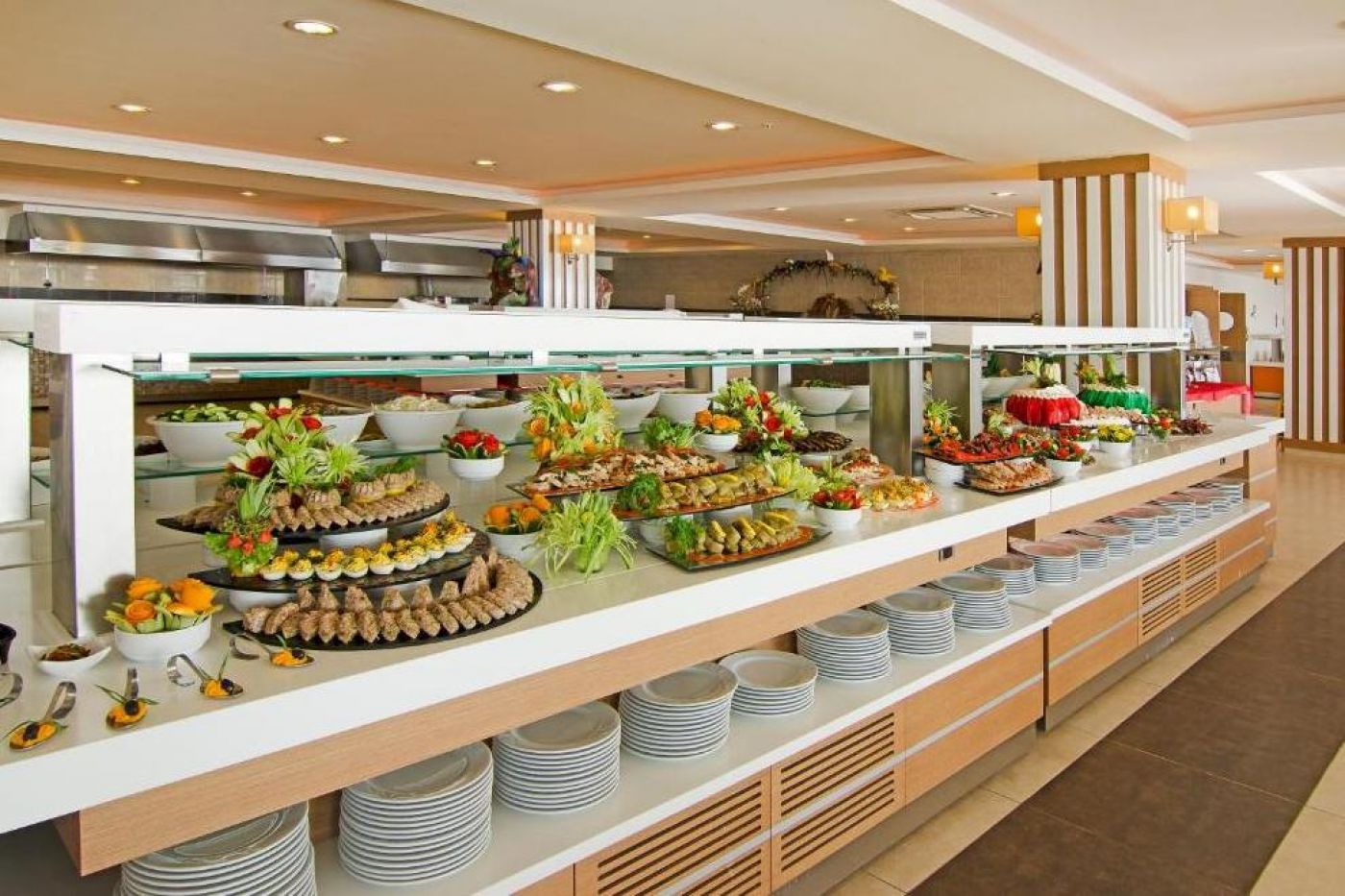 Хотелът разполага с 1 основен ресторант със закрита и открита секция и 3 а`ла карт ресторанта - турски, италиански и рибен (едно посещение с предварителна резервация - за почивка от 7 нощувки - безплатно). На територията на хотела има 4 бара - на лоби, при басейна, бар на плажа, диско бар. Ultra All inclusive концепцията включва закуска, обяд и вечеря на шведска маса, допълнителни хранения и напитки местно производство без лимит.