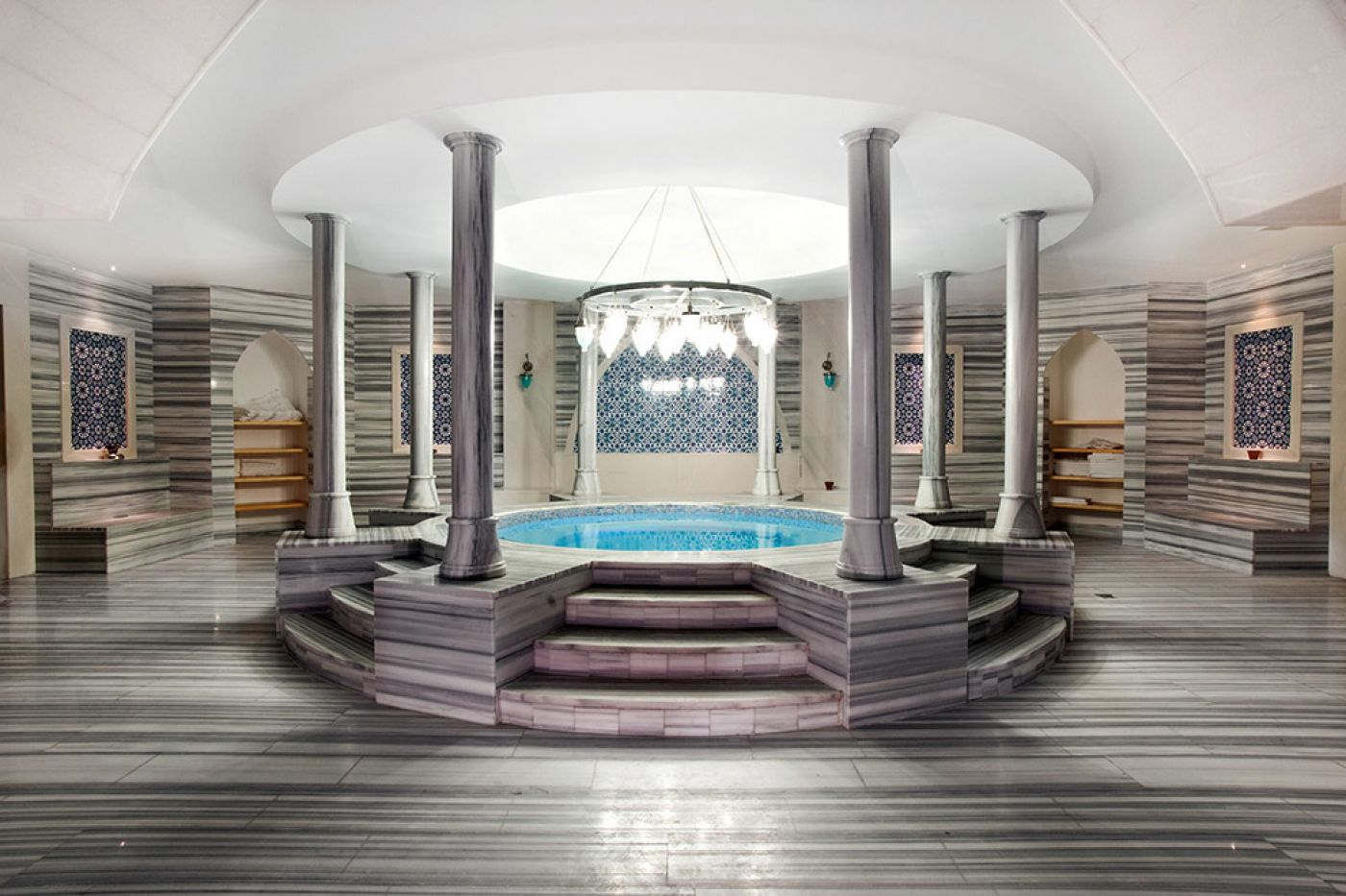 Собствен пясъчен плаж, разделен на общ и само за възрастни. 2 открити басейна със сладка вода, неотопляеми: 1307 и 964 кв.м. 1 закрит басейн със сладка вода, 360 кв.м., отворен 01.04.-15.05. и 15.09.-31.10. Аквапарк за възрастни: 8 неотопляеми водни пързалки, отворени 10:00-17:00 ч. от 15.05.-30.09.