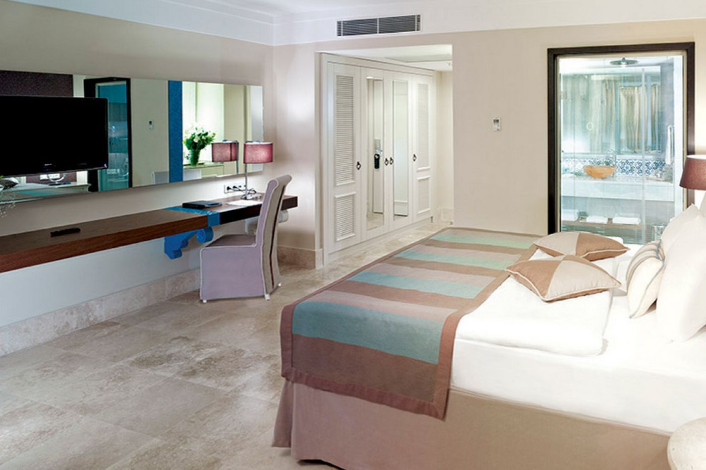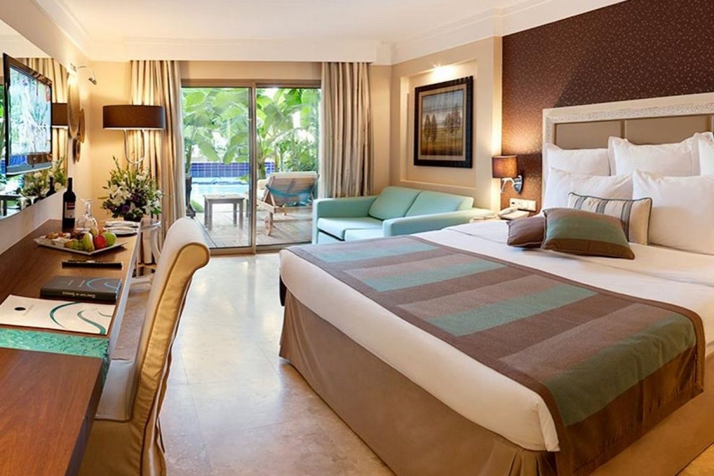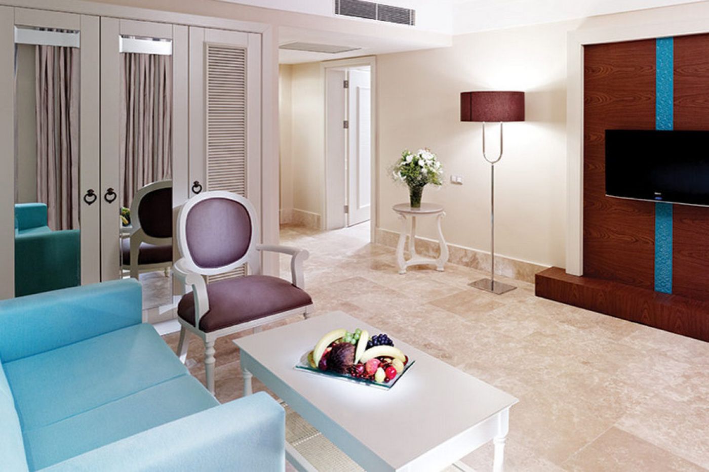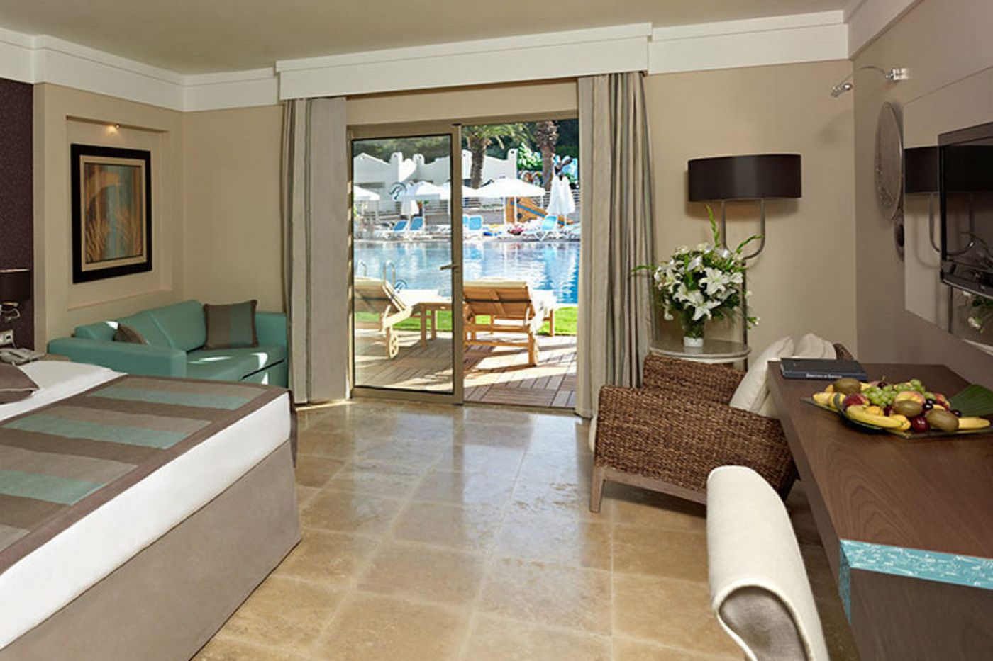 Хотелът се състои от два 5-етажни корпуса, в които са разпределени 268 климатизирани стаи, от които 88 Standard garden view (33 кв.м), 104 Standard sea view (33 кв.м), 36 Standard Pool Side (директен достъп до басейна, с индивидуална тераса с шезлонги, 33 кв.м), 20 Terrace Suite стаи (директен изглед към море, джакузи на терасата, безплатен рум сървис 24/7, комплимент при настаняване, 70 кв.м), 20 Family Suites (гледка градина, спалня и всекидневна с преградна врата, баня с душ и вана, 65 кв.м), 2 Handicapped (пригодени за хора с ограничена подвижност, 33 кв.м). Всички стаи са оборудвани телевизор, телефон, сет за чай/кафе, минибар (ежедневно зареждане с вода и безалкохолни напитки - безплатно), сейф (безплатно), баня с душ, сешоар, тоалетни принадлежности, балкон, Wi-Fi. Стаите се почистват всеки ден, спалното бельо се сменя 2 пъти седмично.
