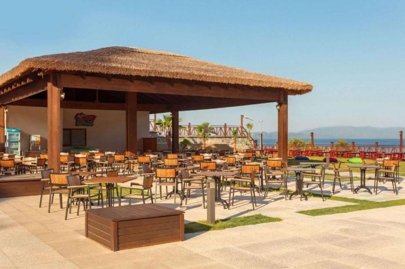 Хотелът се намира на 2 км от собствен пясъчно-чакълест плаж, осигурен е безплатен шатъл до плажа на всеки час от 10:00 до 16:00 часа в периода от 1 май до 30 октомври. Барът на плажа предлага безплатни безалкохолни напитки, бира и закуски. 4 открити басейна (единият от тях се отоплява през студения сезон). Предлага също основен басейн (617 кв.м), басейн с джакузи (380 кв.м), закрит басейн (78 кв.м), детски басейн (63 кв.м), аквапарк за възрастни и аквапарк за деца с водни пързалки и допълнителни 2 басейна. Чадъри, шезлонги, матраци и плажни кърпи на басейна и на плажа се предоставят безплатно. Осигурен е безплатен транспорт до плажа.